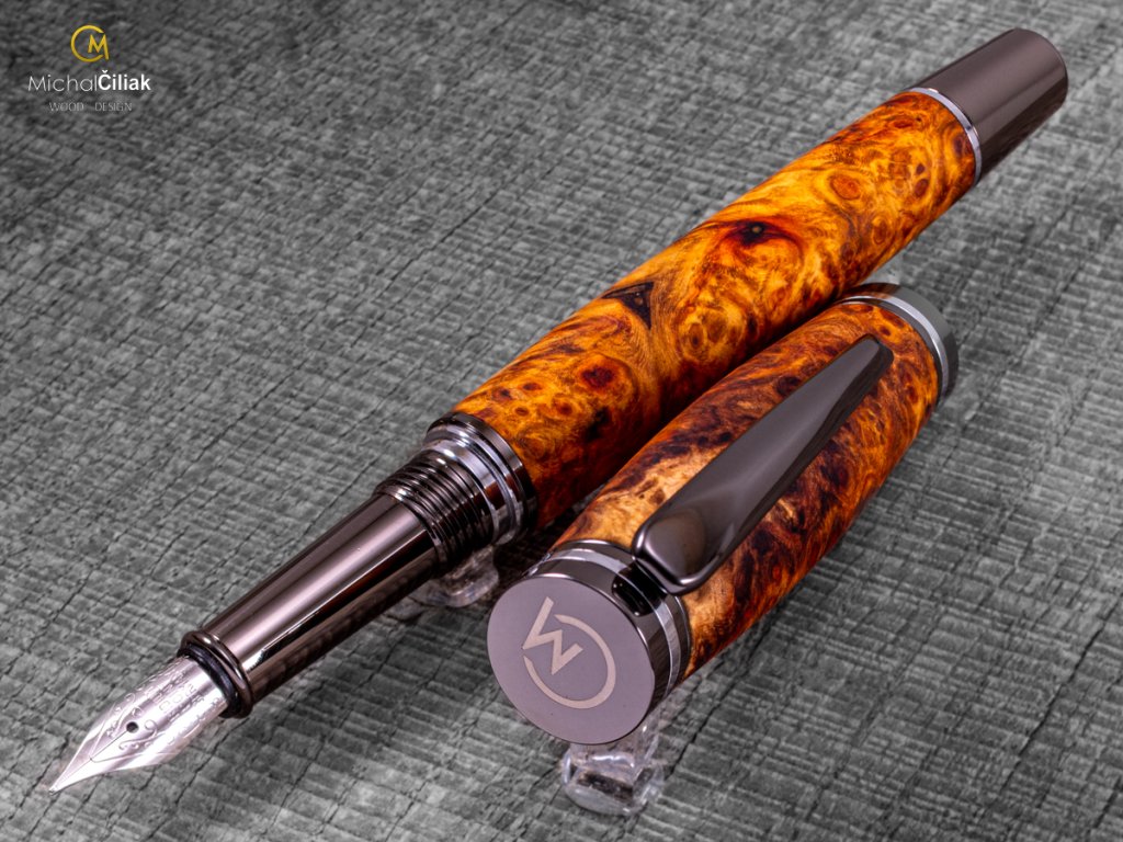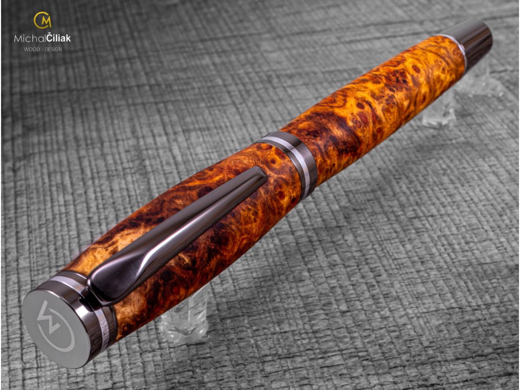 Exklusiver und luxuriöser Füller von herausragender Qualität Ambonea Burl-Holz - Brilliance gunmetal chrome