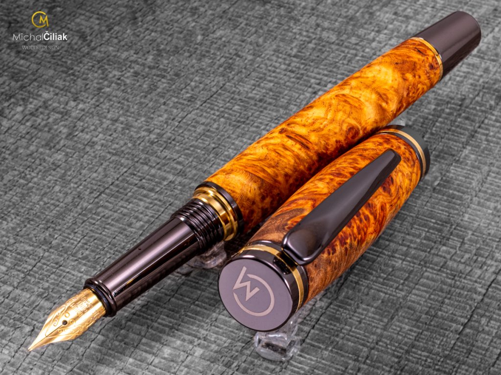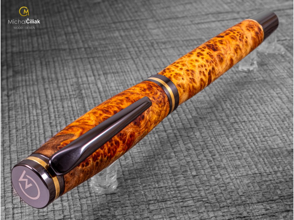 Exklusiver und luxuriöser Füller von herausragender Qualität Ambonea Burl-Holz - Brilliance gunmetal golden