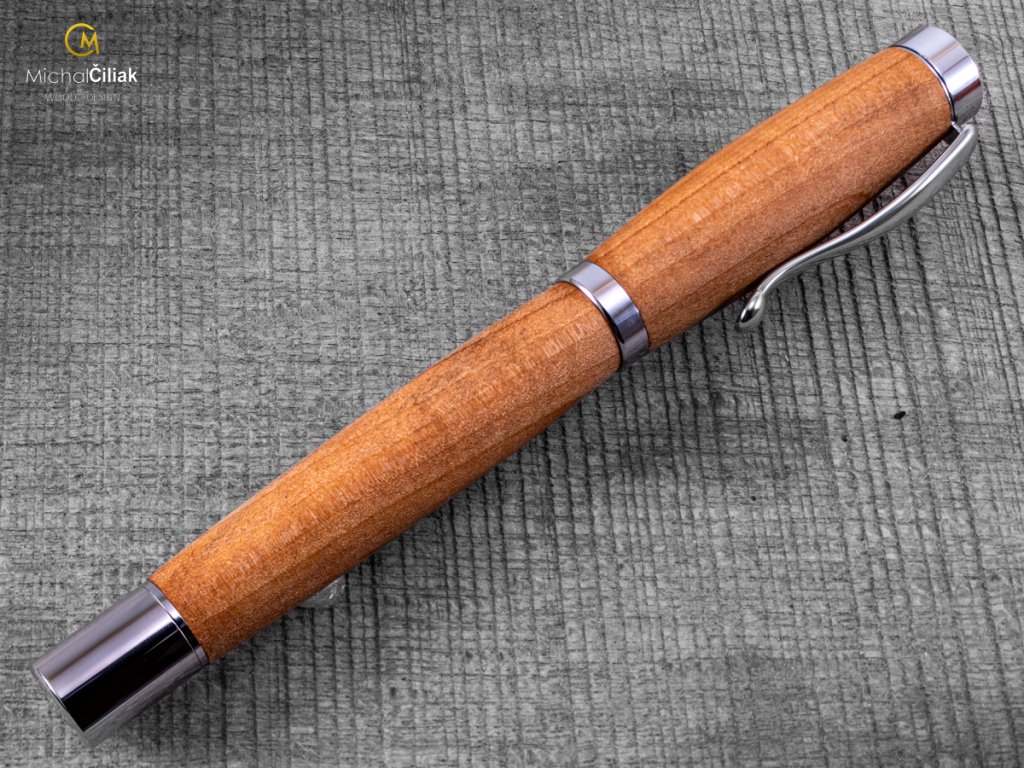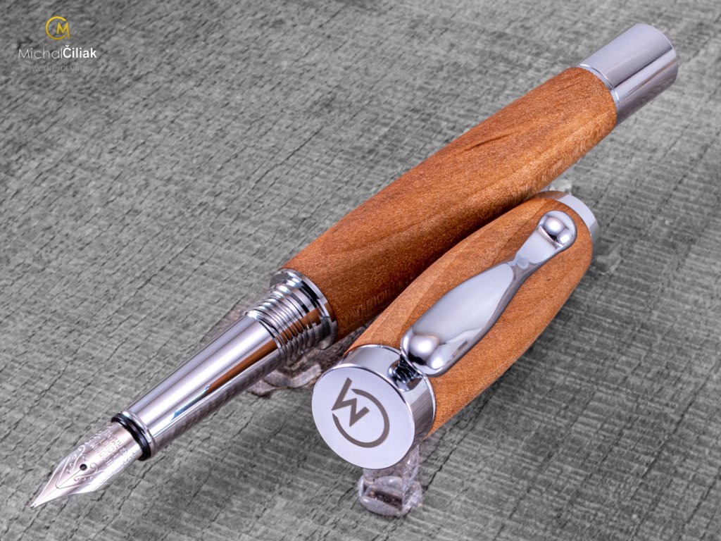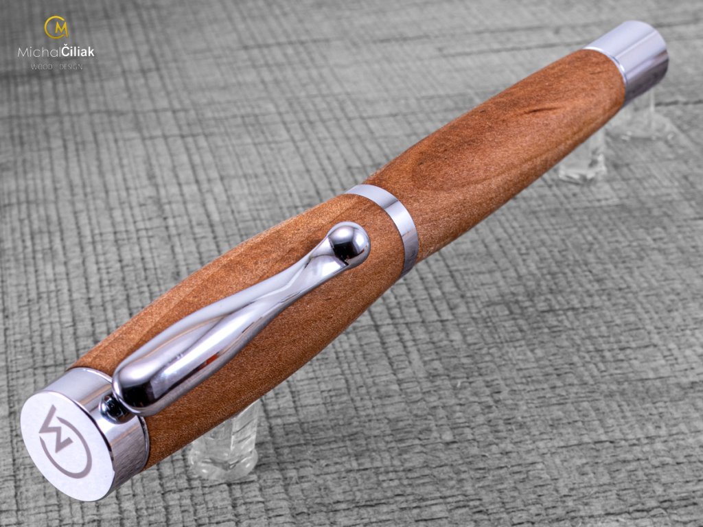 Handgemacht vom Apfelbaum, dessen Kern, aus dem der Stift besteht, ist hell- bis dunkelbraun gefärbt mit einer ziemlich deutlichen Gravur mit Farbkontrasten. Die Kombination der dunklen und hellbraunen Farben macht diesen Stift sehr elegant mit der notwendigen Portion Persönlichkeit.