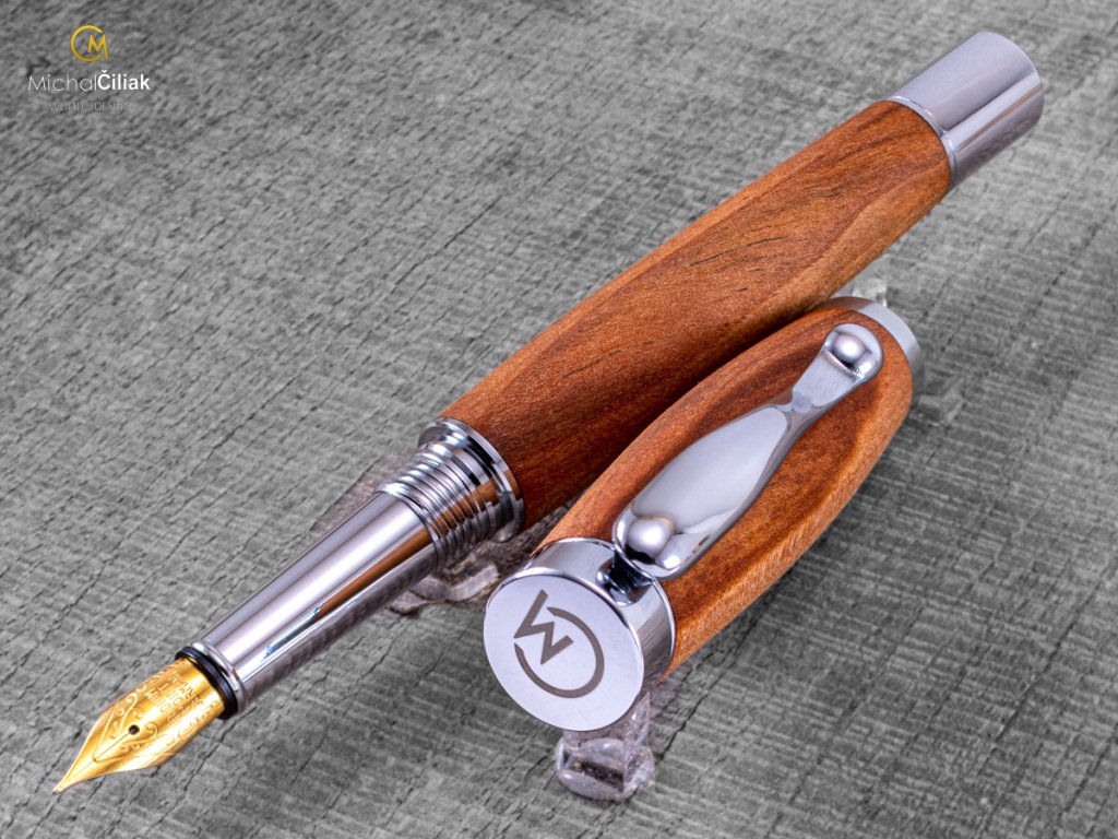 Handgemacht vom Apfelbaum, dessen Kern, aus dem der Stift besteht, ist hell- bis dunkelbraun gefärbt mit einer ziemlich deutlichen Gravur mit Farbkontrasten. Die Kombination der dunklen und hellbraunen Farben macht diesen Stift sehr elegant mit der notwendigen Portion Persönlichkeit.