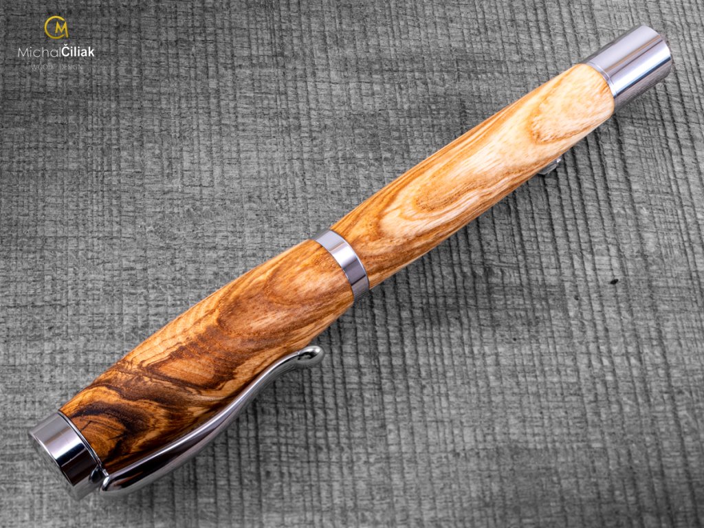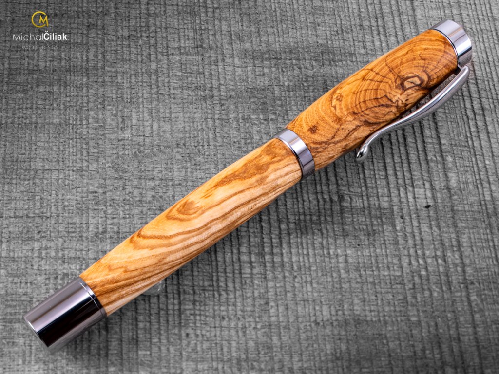 Handgefertigt aus Esche, deren Holz sehr hart und zugleich flexibel ist - eines der flexibelsten europischen Hölzer. Das Eschenkernholz ist hellbraun mit sehr ausgeprägten Jahresringen. Aus diesem Grund ist die Auswahl des Holzes sehr wichtig, weil bestimmte Stücke Eschenholz wirklich interessante Jahresringe haben, wie dieser Stift beweist. Es sieht fast künstlich aus, aber glauben Sie es, das Holz ist eine Schöpfung der Natur.