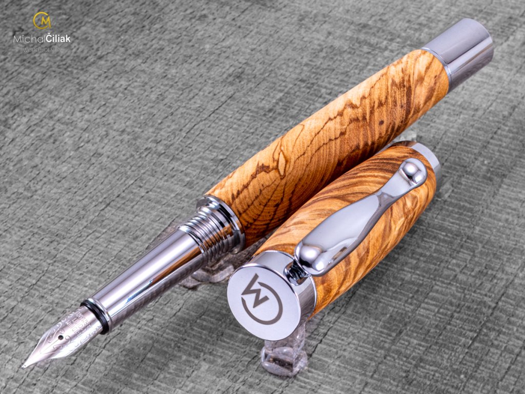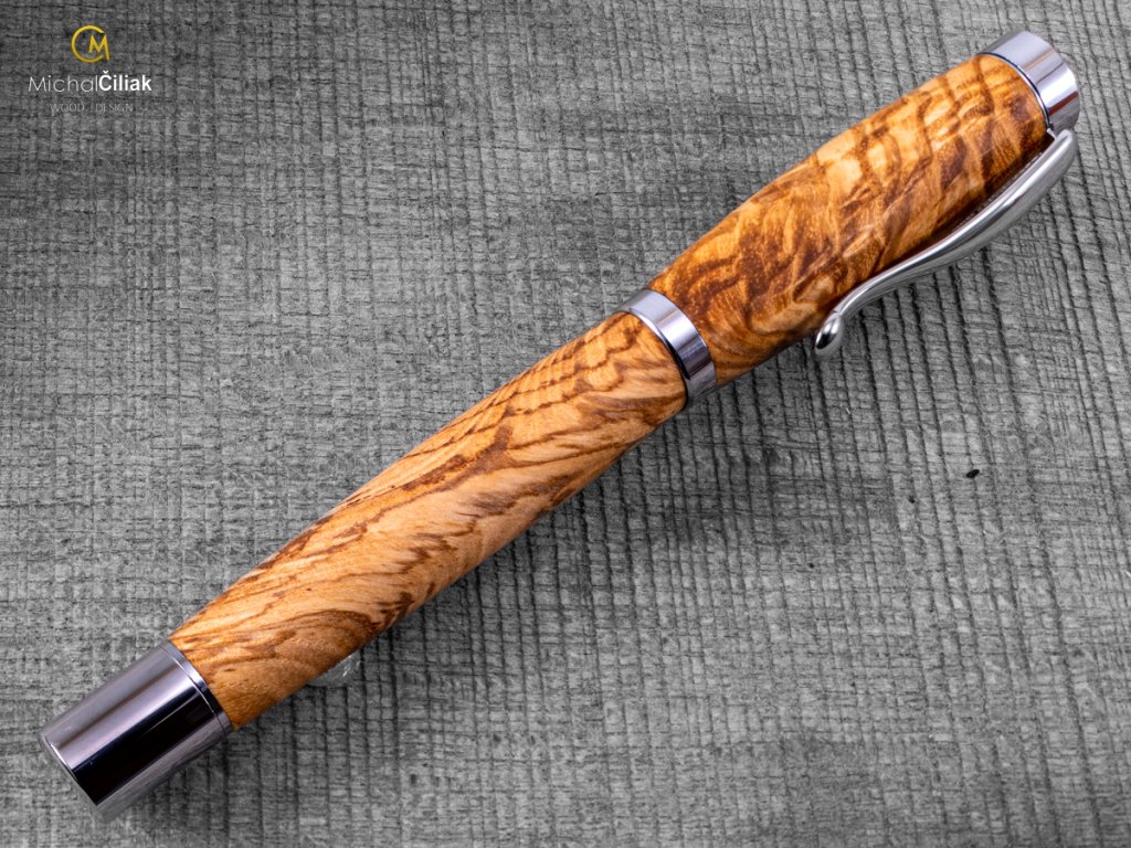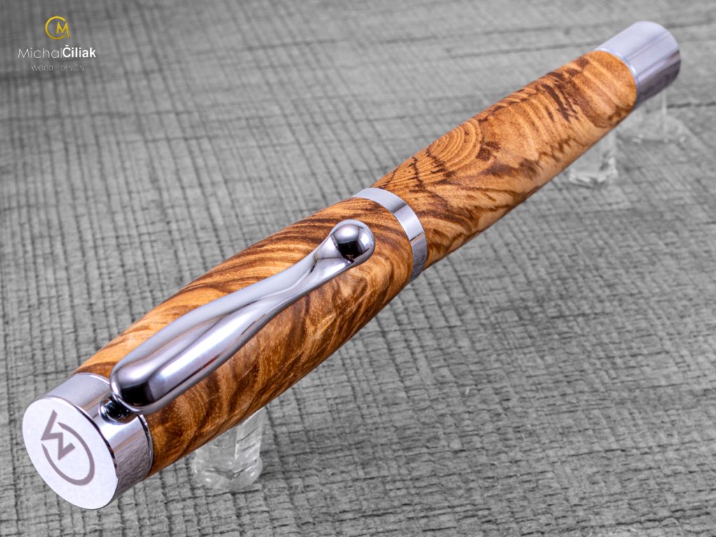 Handgefertigt aus Esche, deren Holz sehr hart und zugleich flexibel ist - eines der flexibelsten europischen Hölzer. Das Eschenkernholz ist hellbraun mit sehr ausgeprägten Jahresringen. Aus diesem Grund ist die Auswahl des Holzes sehr wichtig, weil bestimmte Stücke Eschenholz wirklich interessante Jahresringe haben, wie dieser Stift beweist. Es sieht fast künstlich aus, aber glauben Sie es, das Holz ist eine Schöpfung der Natur.