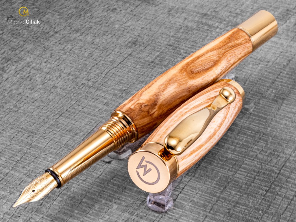 Handgefertigt aus Esche, deren Holz sehr hart und zugleich flexibel ist - eines der flexibelsten europischen Hölzer. Das Eschenkernholz ist hellbraun mit sehr ausgeprägten Jahresringen. Aus diesem Grund ist die Auswahl des Holzes sehr wichtig, weil bestimmte Stücke Eschenholz wirklich interessante Jahresringe haben, wie dieser Stift beweist. Es sieht fast künstlich aus, aber glauben Sie es, das Holz ist eine Schöpfung der Natur.