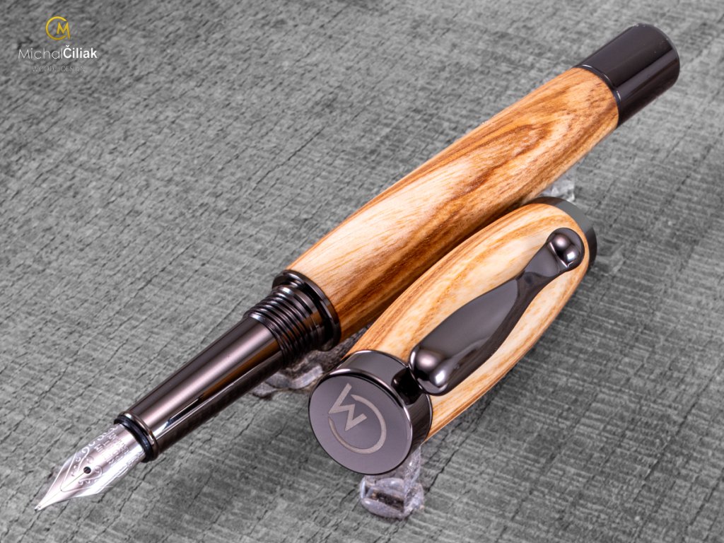 Handgefertigt aus Esche, deren Holz sehr hart und zugleich flexibel ist - eines der flexibelsten europischen Hölzer. Das Eschenkernholz ist hellbraun mit sehr ausgeprägten Jahresringen. Aus diesem Grund ist die Auswahl des Holzes sehr wichtig, weil bestimmte Stücke Eschenholz wirklich interessante Jahresringe haben, wie dieser Stift beweist. Es sieht fast künstlich aus, aber glauben Sie es, das Holz ist eine Schöpfung der Natur.