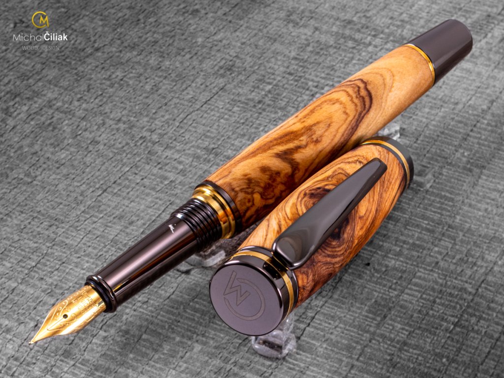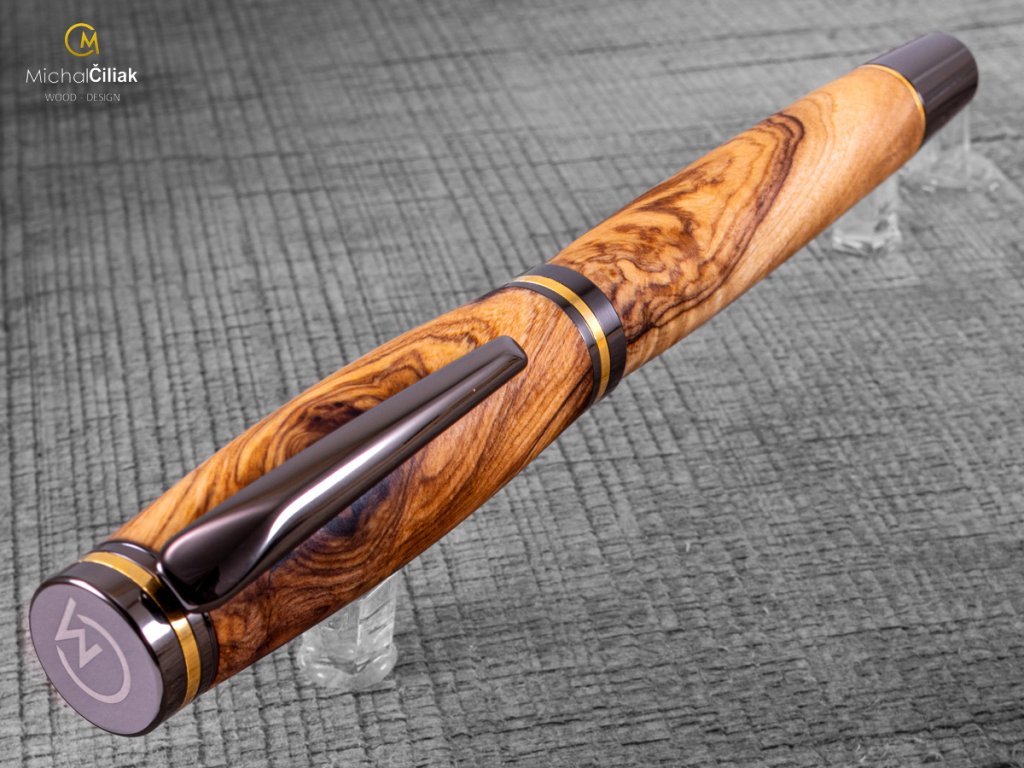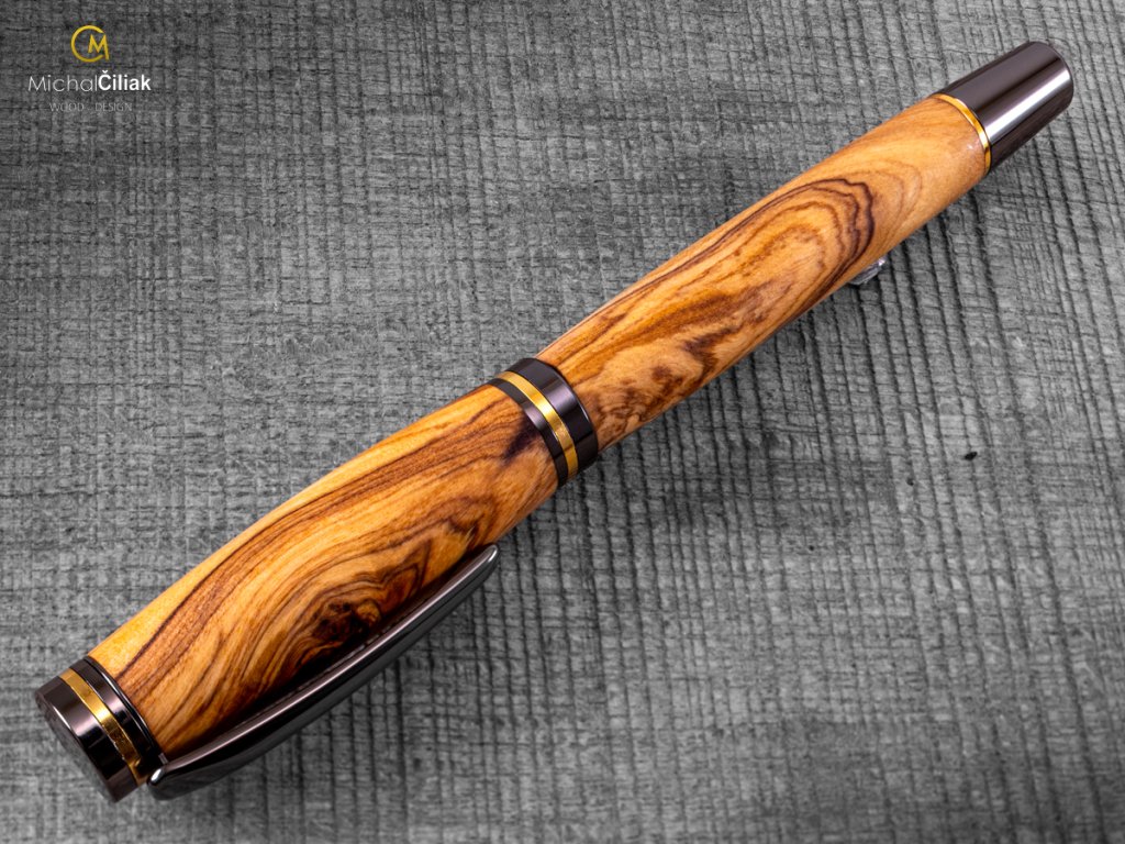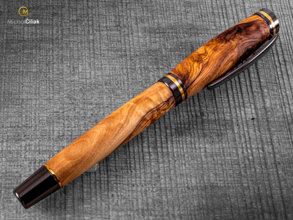 Handgefertigt aus farbigem Harz und erstklassigem Olivenholz, das fest, sehr widerstandsfähig und interessant gefärbt ist und von cremegelb über rosa bis schwarz reicht. Ich brachte es persönlich von der griechischen Insel Karpathos mit, nachdem ich fast sechs Wochen damit verbracht hatte, es zu finden. Der schwierigste Teil, der auch am längsten dauerte, war, mit einem örtlichen Bauern in Kontakt zu treten, der mir große Stücke Olivenholz verkaufte, dessen Alter er auf ungefähr 700 Jahre schätzte. Das langsame Wachstum des Baumes erzeugt ein sehr hartes Holz und eine große Vielfalt an Stammformen, die dem Olivenholz eine erstaunliche Gravur verleihen. EMPFEHLUNG: Ein Stift mit einer Geschichte, wie hunderte Jahre altes Olivenholz in den Hügeln der Insel Karpathos gefunden wurde, wie ich ausgewählte Stücke daraus zusammen mit einem lokalen Zimmermann herausgeschnitten habe, in meine Werkstatt brachte und ihnen neues Leben eingehaucht habe. Sehen Sie hier, wie dieser exquisite Stift in die Welt kam. Werden Sie Ihre eigenen Geschichten damit schreiben oder geben Sie es jemandem als ein wirklich einzigartiges Geschenk?