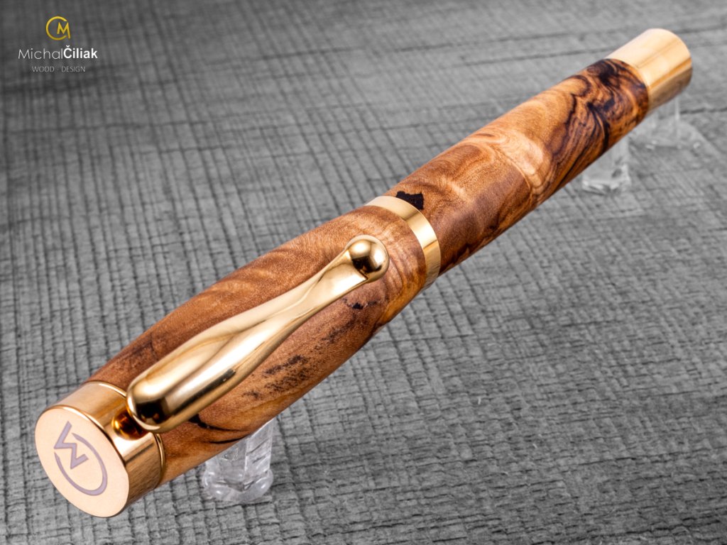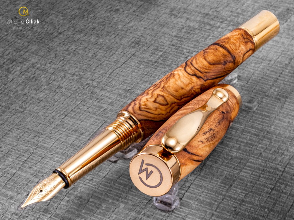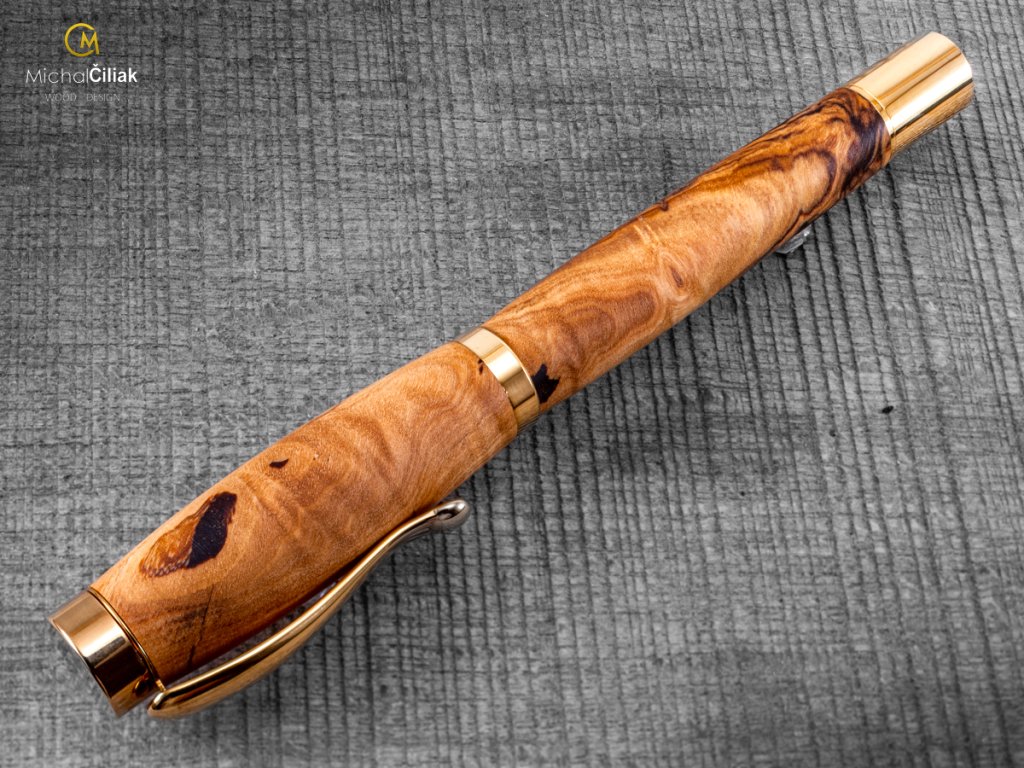 Handgefertigt aus farbigem Harz und erstklassigem Olivenholz, das fest, sehr widerstandsfähig und interessant gefärbt ist und von cremegelb über rosa bis schwarz reicht. Ich brachte es persönlich von der griechischen Insel Karpathos mit, nachdem ich fast sechs Wochen damit verbracht hatte, es zu finden. Der schwierigste Teil, der auch am längsten dauerte, war, mit einem örtlichen Bauern in Kontakt zu treten, der mir große Stücke Olivenholz verkaufte, dessen Alter er auf ungefähr 700 Jahre schätzte. Das langsame Wachstum des Baumes erzeugt ein sehr hartes Holz und eine große Vielfalt an Stammformen, die dem Olivenholz eine erstaunliche Gravur verleihen. EMPFEHLUNG: Ein Stift mit einer Geschichte, wie hunderte Jahre altes Olivenholz in den Hügeln der Insel Karpathos gefunden wurde, wie ich ausgewählte Stücke daraus zusammen mit einem lokalen Zimmermann herausgeschnitten habe, in meine Werkstatt brachte und ihnen neues Leben eingehaucht habe. Sehen Sie hier, wie dieser exquisite Stift in die Welt kam. Werden Sie Ihre eigenen Geschichten damit schreiben oder geben Sie es jemandem als ein wirklich einzigartiges Geschenk?