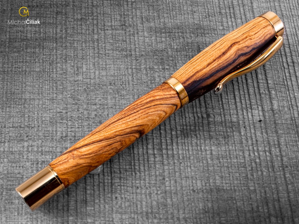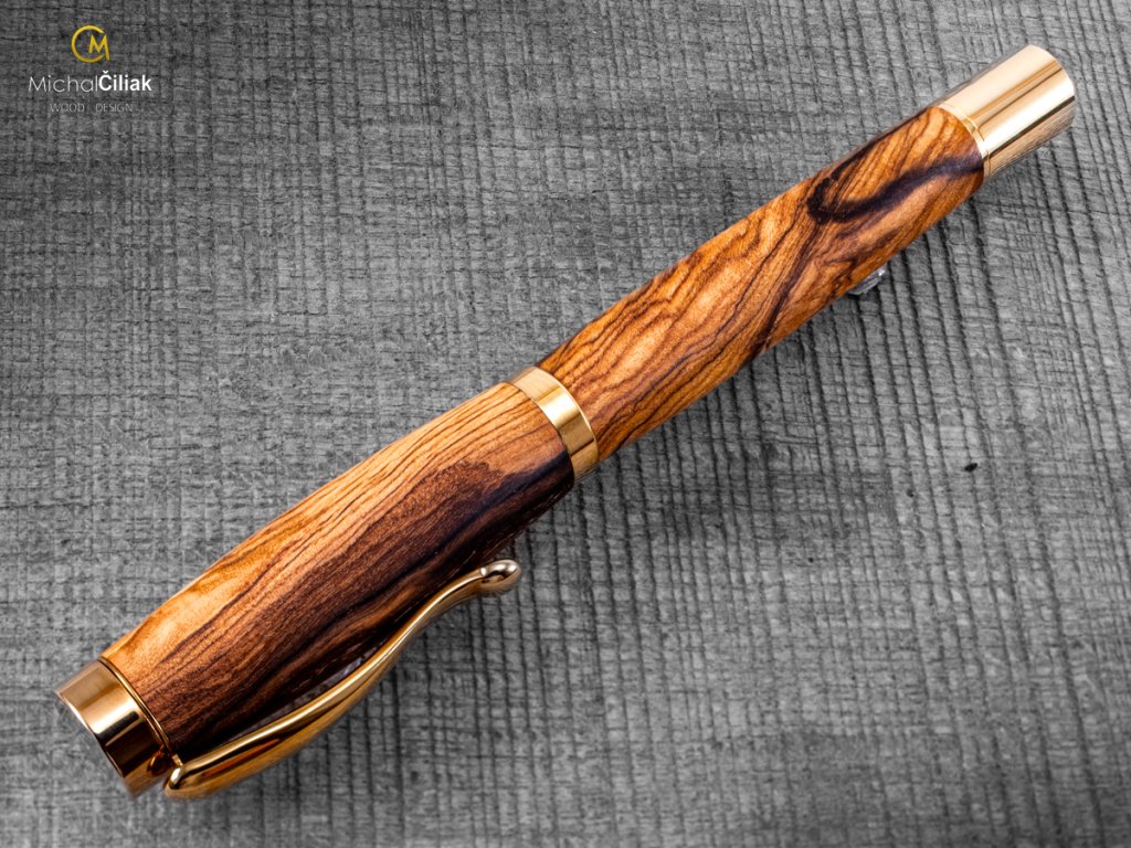 Handgefertigt aus farbigem Harz und erstklassigem Olivenholz, das fest, sehr widerstandsfähig und interessant gefärbt ist und von cremegelb über rosa bis schwarz reicht. Ich brachte es persönlich von der griechischen Insel Karpathos mit, nachdem ich fast sechs Wochen damit verbracht hatte, es zu finden. Der schwierigste Teil, der auch am längsten dauerte, war, mit einem örtlichen Bauern in Kontakt zu treten, der mir große Stücke Olivenholz verkaufte, dessen Alter er auf ungefähr 700 Jahre schätzte. Das langsame Wachstum des Baumes erzeugt ein sehr hartes Holz und eine große Vielfalt an Stammformen, die dem Olivenholz eine erstaunliche Gravur verleihen. EMPFEHLUNG: Ein Stift mit einer Geschichte, wie hunderte Jahre altes Olivenholz in den Hügeln der Insel Karpathos gefunden wurde, wie ich ausgewählte Stücke daraus zusammen mit einem lokalen Zimmermann herausgeschnitten habe, in meine Werkstatt brachte und ihnen neues Leben eingehaucht habe. Sehen Sie hier, wie dieser exquisite Stift in die Welt kam. Werden Sie Ihre eigenen Geschichten damit schreiben oder geben Sie es jemandem als ein wirklich einzigartiges Geschenk?