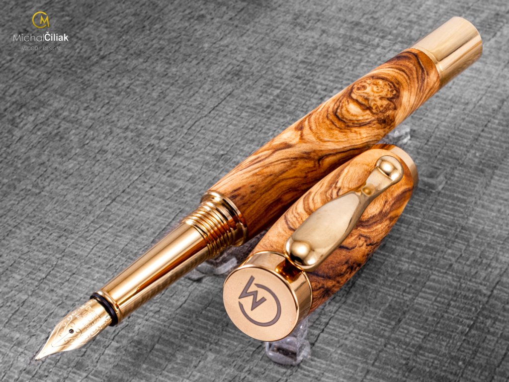 _Exklusiver und luxuriöser Füller von herausragender Qualität Olive tree & resin - Elegant golden