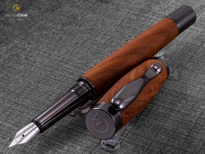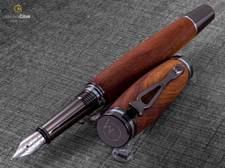 Handgefertigt aus Pflaumenholz, das extrem hart und einzigartig verschiedenfarbig ist. Der Stift ist aus Kernholz geschnitzt und zeigt Farbtöne von rosa, rot-braun, mahagonibraun, weinrot bis purpurfarben. Jedes Stück ist anders und bietet eine große Farbvielfalt.