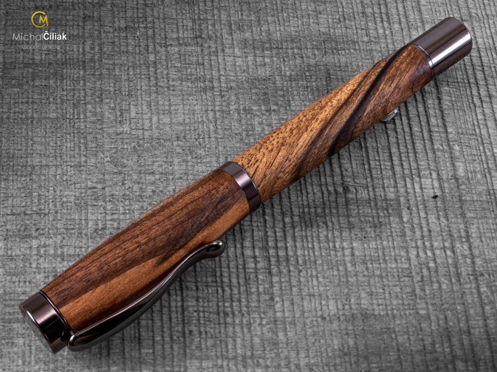 Handgefertigt aus Walnussholz, das sich durch Eleganz und hohe Wertschätzung auszeichnet. Der Stift besteht aus dem Kernholz, das dunkelbraun bis schwarz mit einer unverwechselbaren Textur ist.
