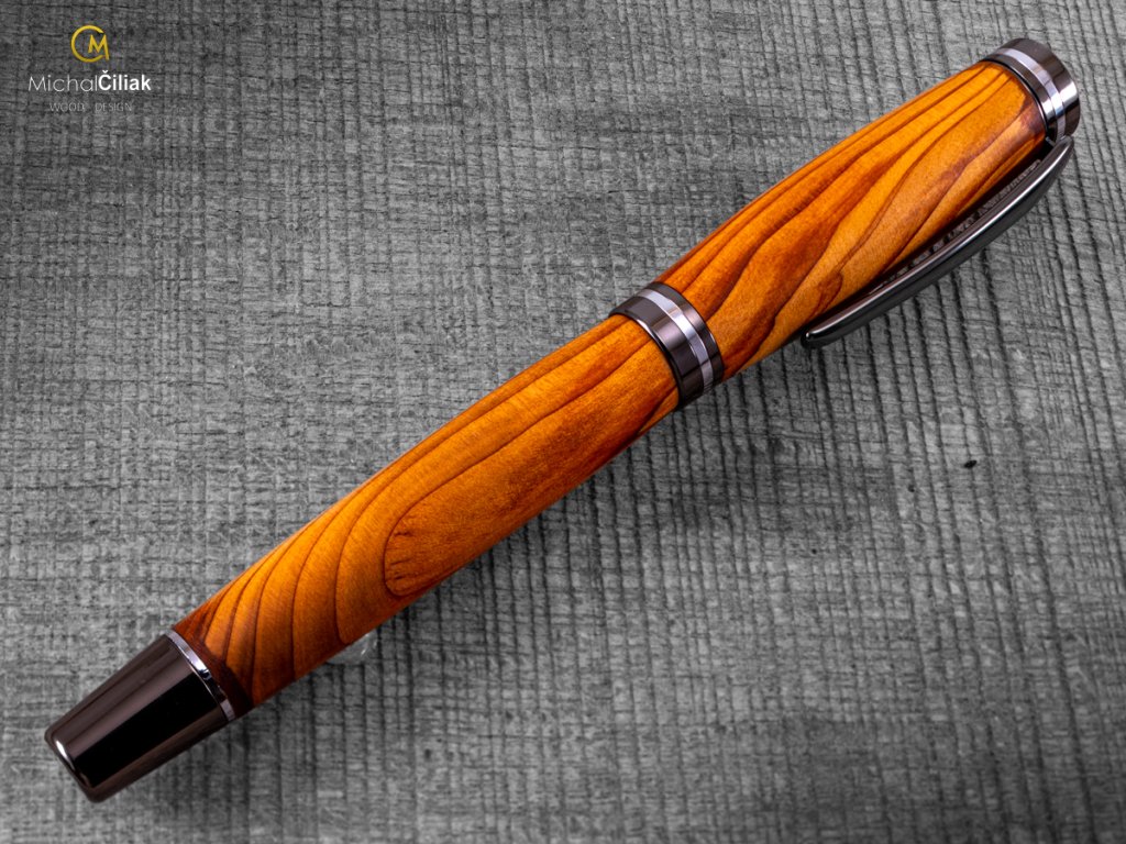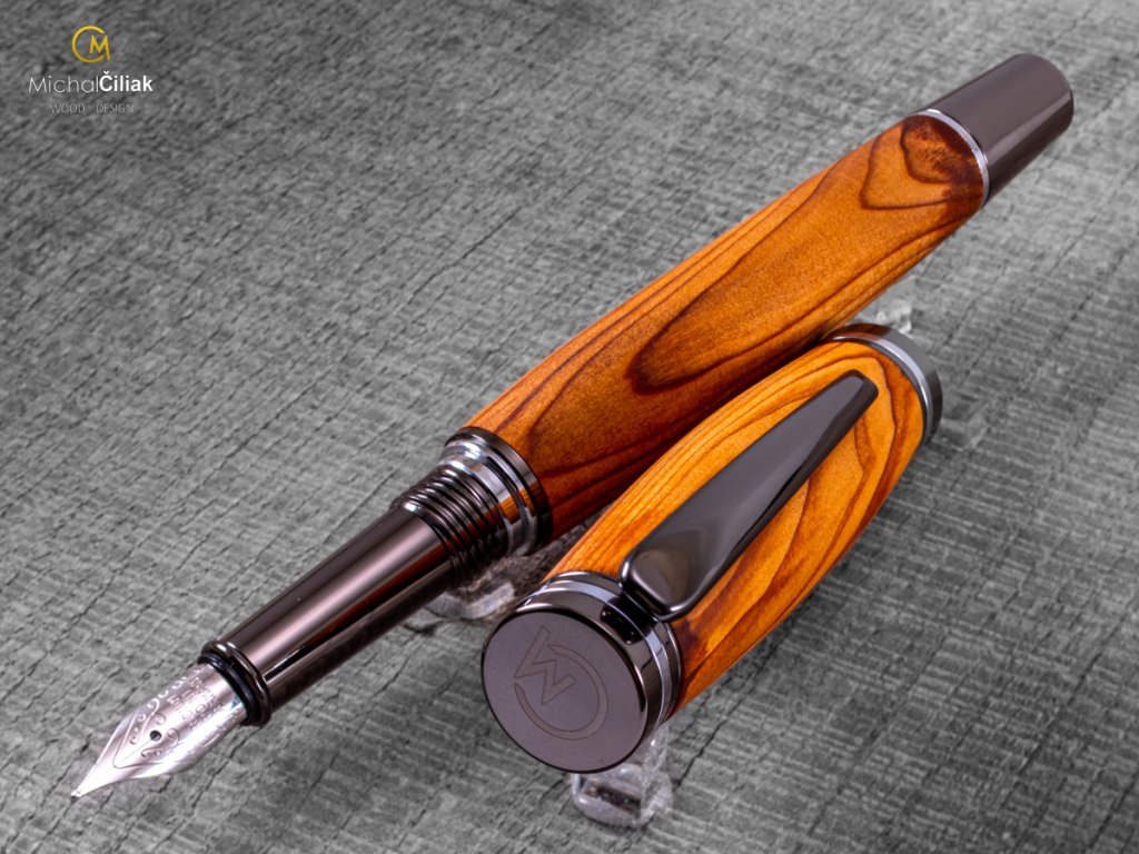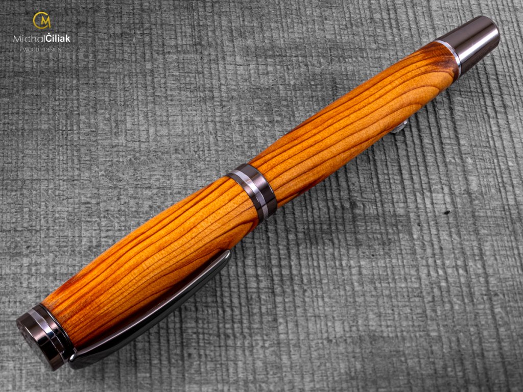 Handgemacht von der seltenen Eibe, einer der härtesten Nadelbäume in Europa. Seine rötlich-orange Farbe Holz hat ausgeprägte Jahresringe, die eine schöne Gravierung schaffen. Damit ein aus diesem Holz gefertigter Stift auch interessant aussieht, muss man das Material sehr sorgfältig suchen und auswählen. So entstand auch dieses exklusive Stück.