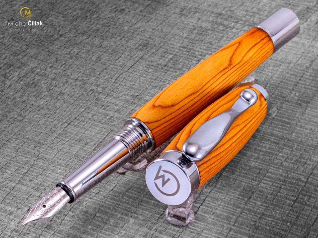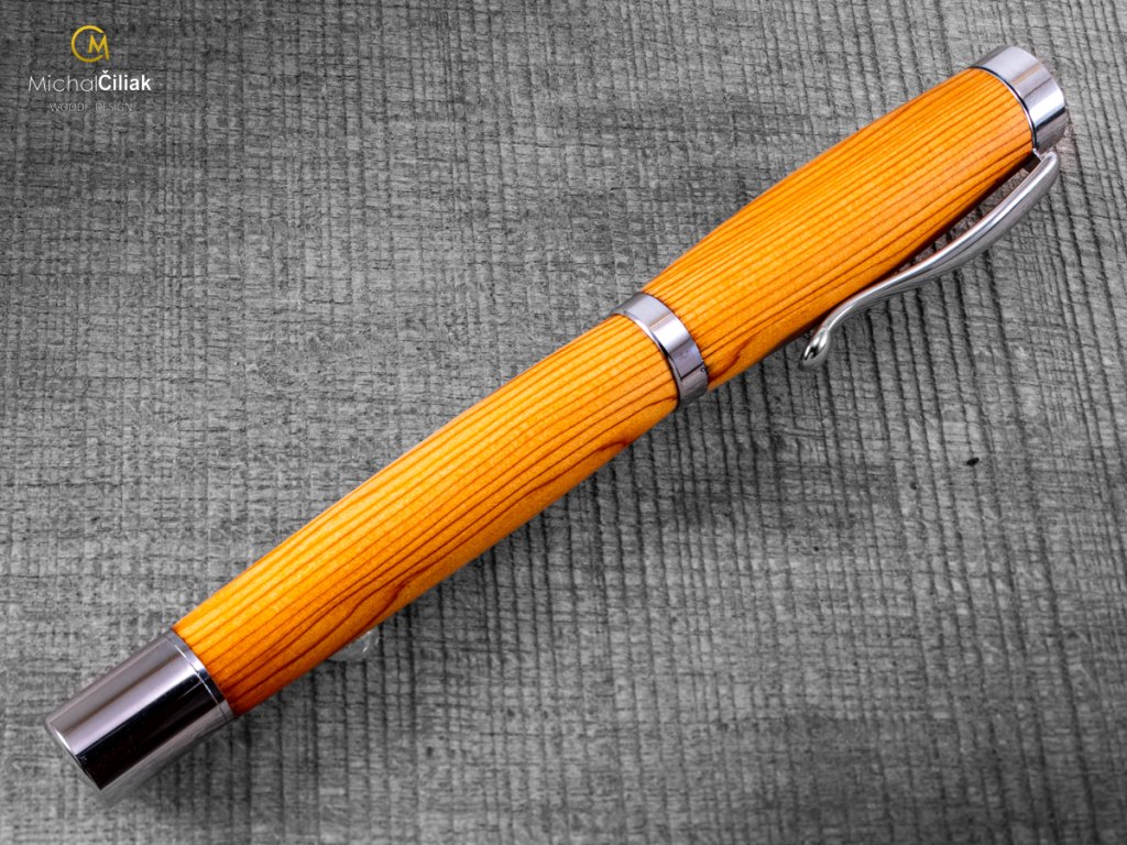 Handgemacht von der seltenen Eibe, einer der härtesten Nadelbäume in Europa. Seine rötlich-orange Farbe Holz hat ausgeprägte Jahresringe, die eine schöne Gravierung schaffen. Damit ein aus diesem Holz gefertigter Stift auch interessant aussieht, muss man das Material sehr sorgfältig suchen und auswählen. So entstand auch dieses exklusive Stück.