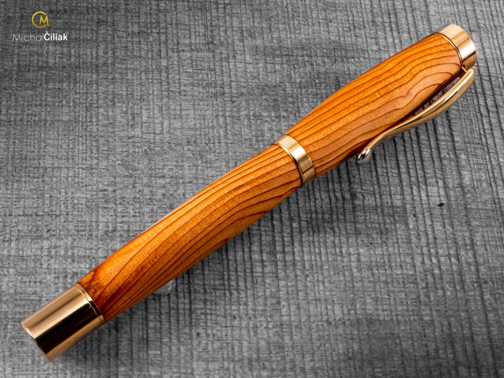 Handgemacht von der seltenen Eibe, einer der härtesten Nadelbäume in Europa. Seine rötlich-orange Farbe Holz hat ausgeprägte Jahresringe, die eine schöne Gravierung schaffen. Damit ein aus diesem Holz gefertigter Stift auch interessant aussieht, muss man das Material sehr sorgfältig suchen und auswählen. So entstand auch dieses exklusive Stück.