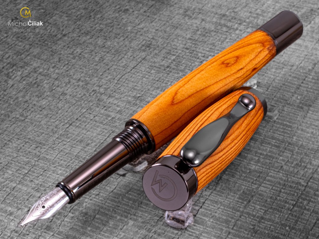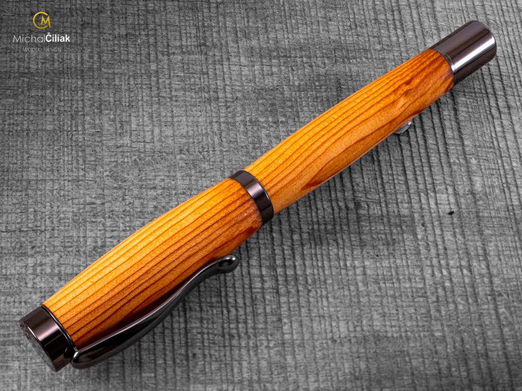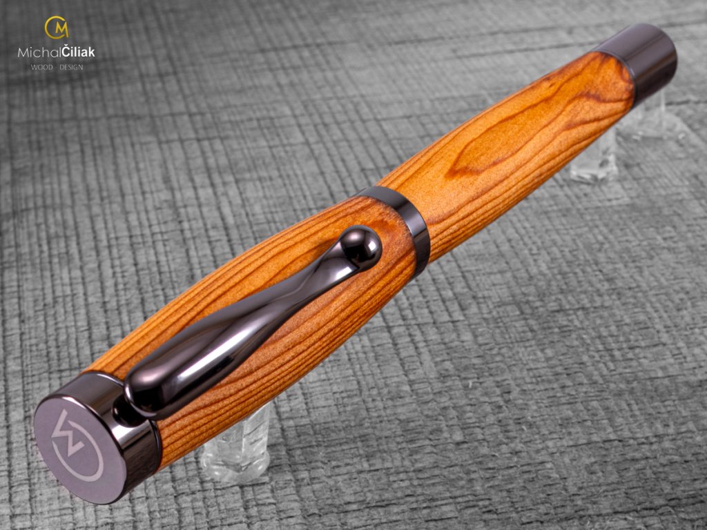 Handgemacht von der seltenen Eibe, einer der härtesten Nadelbäume in Europa. Seine rötlich-orange Farbe Holz hat ausgeprägte Jahresringe, die eine schöne Gravierung schaffen. Damit ein aus diesem Holz gefertigter Stift auch interessant aussieht, muss man das Material sehr sorgfältig suchen und auswählen. So entstand auch dieses exklusive Stück.