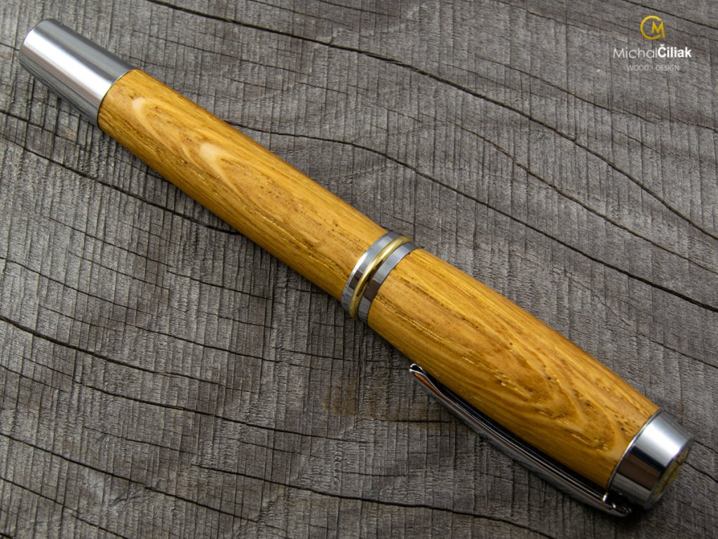 Handgefertigt aus Eichenholz, das hart und sehr langlebig ist. Das Herz des Baumes, aus dem der Stift besteht, ist hellbraun gefärbt mit einer ziemlich deutlichen Gravur. Alkoholische Getränke, die in Eichenfässern gären, sind dank ihres unverwechselbaren Geschmacks leicht zu erkennen. Und die Stifte aus Eichenholz von Michal Čiliak sind sehr schön anzusehen.