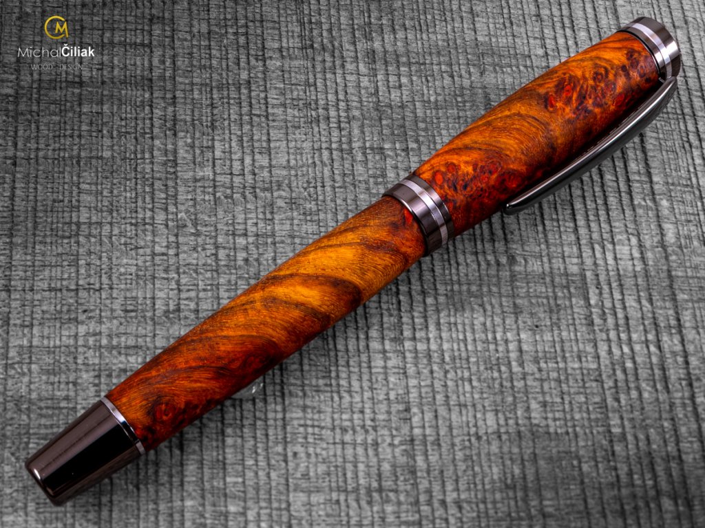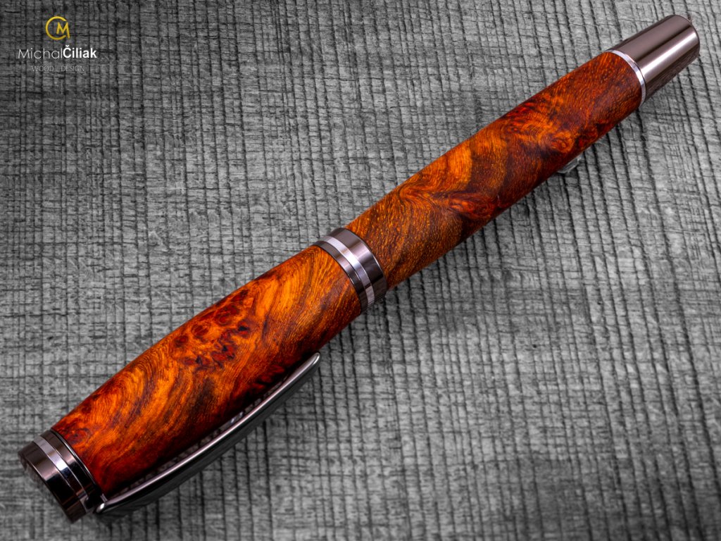 Exklusiver und luxuriöser Kugelschreiber von herausragender Qualität Ambonea Burl-Holz - Brilliance gunmetal chrome