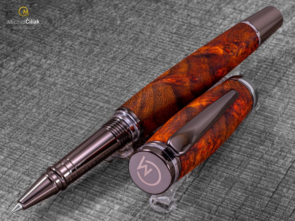 Handgefertigter Füller aus Ambonea Burl Wood – luxuriöses Holz mit einzigartiger Maserung Dieser Füller ist wirklich einzigartig. Ich habe ihn von Hand aus Ambonea Burl Wood gefertigt, einem der seltensten und luxuriösesten Hölzer der Welt, bekannt für seine markante Maserung und kontrastreichen Farbtöne von Gold bis tiefrot. Jeder Füller ist ein Unikat – kein Stück Holz gleicht dem anderen. Ambonea Wood stammt aus Indonesien, meist von den Inseln Borneo, Sulawesi und den Molukken. Das Holz ist hart, widerstandsfähig und aufgrund des langsamen Baumwachstums besonders strukturiert, wodurch der Füller eine faszinierende dreidimensionale Optik erhält. Der Herstellungsprozess ist aufwendig – das Holz wird sorgfältig bearbeitet und in die endgültige Form gebracht. Jeder Füller wird von Hand gedrechselt, poliert und mit natürlichen Wachsen und Ölen behandelt. Das Ergebnis ist ein eleganter, robuster und luxuriöser Füller, der angenehm in der Hand liegt und langlebig ist. TIPP! Dieser Füller aus Ambonea Burl Wood eignet sich perfekt als luxuriöses Geschenk, das einzigartiges Design und seltenes Holz vereint. Ideal für Sammler, Schreibbegeisterte oder als originelles Geschenk zu Geburtstagen, Jubiläen oder besonderen Anlässen. Jedes Stück erzählt seine eigene Geschichte durch die einzigartige Maserung und den Charakter des Holzes. Mit diesem Füller können Sie Ihre eigenen Geschichten schreiben oder ihn an jemanden verschenken, der Luxus und Einzigartigkeit zu schätzen weiß.