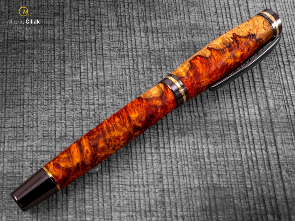 Handgefertigter Füller aus Ambonea Burl Wood – luxuriöses Holz mit einzigartiger Maserung Dieser Füller ist wirklich einzigartig. Ich habe ihn von Hand aus Ambonea Burl Wood gefertigt, einem der seltensten und luxuriösesten Hölzer der Welt, bekannt für seine markante Maserung und kontrastreichen Farbtöne von Gold bis tiefrot. Jeder Füller ist ein Unikat – kein Stück Holz gleicht dem anderen. Ambonea Wood stammt aus Indonesien, meist von den Inseln Borneo, Sulawesi und den Molukken. Das Holz ist hart, widerstandsfähig und aufgrund des langsamen Baumwachstums besonders strukturiert, wodurch der Füller eine faszinierende dreidimensionale Optik erhält. Der Herstellungsprozess ist aufwendig – das Holz wird sorgfältig bearbeitet und in die endgültige Form gebracht. Jeder Füller wird von Hand gedrechselt, poliert und mit natürlichen Wachsen und Ölen behandelt. Das Ergebnis ist ein eleganter, robuster und luxuriöser Füller, der angenehm in der Hand liegt und langlebig ist. TIPP! Dieser Füller aus Ambonea Burl Wood eignet sich perfekt als luxuriöses Geschenk, das einzigartiges Design und seltenes Holz vereint. Ideal für Sammler, Schreibbegeisterte oder als originelles Geschenk zu Geburtstagen, Jubiläen oder besonderen Anlässen. Jedes Stück erzählt seine eigene Geschichte durch die einzigartige Maserung und den Charakter des Holzes. Mit diesem Füller können Sie Ihre eigenen Geschichten schreiben oder ihn an jemanden verschenken, der Luxus und Einzigartigkeit zu schätzen weiß.