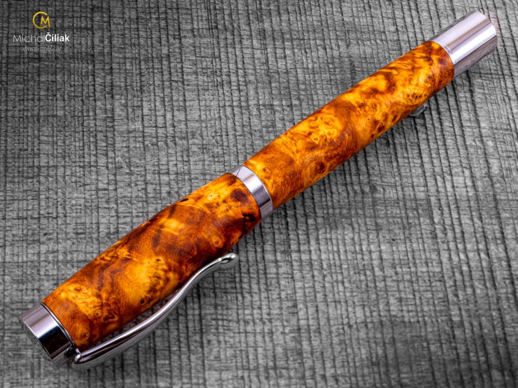 Handgefertigter Füller aus Ambonea Burl Wood – luxuriöses Holz mit einzigartiger Maserung Dieser Füller ist wirklich einzigartig. Ich habe ihn von Hand aus Ambonea Burl Wood gefertigt, einem der seltensten und luxuriösesten Hölzer der Welt, bekannt für seine markante Maserung und kontrastreichen Farbtöne von Gold bis tiefrot. Jeder Füller ist ein Unikat – kein Stück Holz gleicht dem anderen. Ambonea Wood stammt aus Indonesien, meist von den Inseln Borneo, Sulawesi und den Molukken. Das Holz ist hart, widerstandsfähig und aufgrund des langsamen Baumwachstums besonders strukturiert, wodurch der Füller eine faszinierende dreidimensionale Optik erhält. Der Herstellungsprozess ist aufwendig – das Holz wird sorgfältig bearbeitet und in die endgültige Form gebracht. Jeder Füller wird von Hand gedrechselt, poliert und mit natürlichen Wachsen und Ölen behandelt. Das Ergebnis ist ein eleganter, robuster und luxuriöser Füller, der angenehm in der Hand liegt und langlebig ist. TIPP! Dieser Füller aus Ambonea Burl Wood eignet sich perfekt als luxuriöses Geschenk, das einzigartiges Design und seltenes Holz vereint. Ideal für Sammler, Schreibbegeisterte oder als originelles Geschenk zu Geburtstagen, Jubiläen oder besonderen Anlässen. Jedes Stück erzählt seine eigene Geschichte durch die einzigartige Maserung und den Charakter des Holzes. Mit diesem Füller können Sie Ihre eigenen Geschichten schreiben oder ihn an jemanden verschenken, der Luxus und Einzigartigkeit zu schätzen weiß.