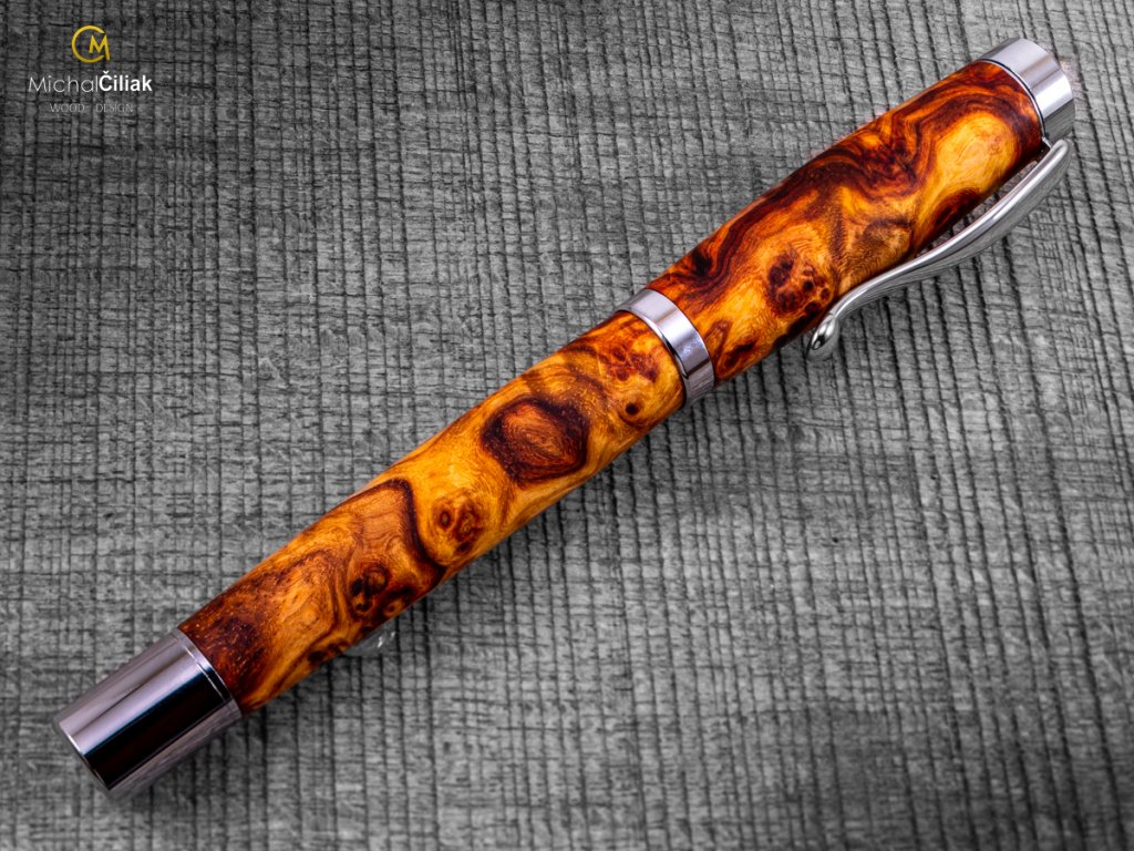 Handgefertigter Füller aus Ambonea Burl Wood – luxuriöses Holz mit einzigartiger Maserung Dieser Füller ist wirklich einzigartig. Ich habe ihn von Hand aus Ambonea Burl Wood gefertigt, einem der seltensten und luxuriösesten Hölzer der Welt, bekannt für seine markante Maserung und kontrastreichen Farbtöne von Gold bis tiefrot. Jeder Füller ist ein Unikat – kein Stück Holz gleicht dem anderen. Ambonea Wood stammt aus Indonesien, meist von den Inseln Borneo, Sulawesi und den Molukken. Das Holz ist hart, widerstandsfähig und aufgrund des langsamen Baumwachstums besonders strukturiert, wodurch der Füller eine faszinierende dreidimensionale Optik erhält. Der Herstellungsprozess ist aufwendig – das Holz wird sorgfältig bearbeitet und in die endgültige Form gebracht. Jeder Füller wird von Hand gedrechselt, poliert und mit natürlichen Wachsen und Ölen behandelt. Das Ergebnis ist ein eleganter, robuster und luxuriöser Füller, der angenehm in der Hand liegt und langlebig ist. TIPP! Dieser Füller aus Ambonea Burl Wood eignet sich perfekt als luxuriöses Geschenk, das einzigartiges Design und seltenes Holz vereint. Ideal für Sammler, Schreibbegeisterte oder als originelles Geschenk zu Geburtstagen, Jubiläen oder besonderen Anlässen. Jedes Stück erzählt seine eigene Geschichte durch die einzigartige Maserung und den Charakter des Holzes. Mit diesem Füller können Sie Ihre eigenen Geschichten schreiben oder ihn an jemanden verschenken, der Luxus und Einzigartigkeit zu schätzen weiß.