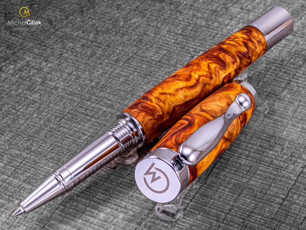Exklusiver und luxuriöser Kugelschreiber von herausragender Qualität Ambonea Burl-Holz - Elegant chromedesign