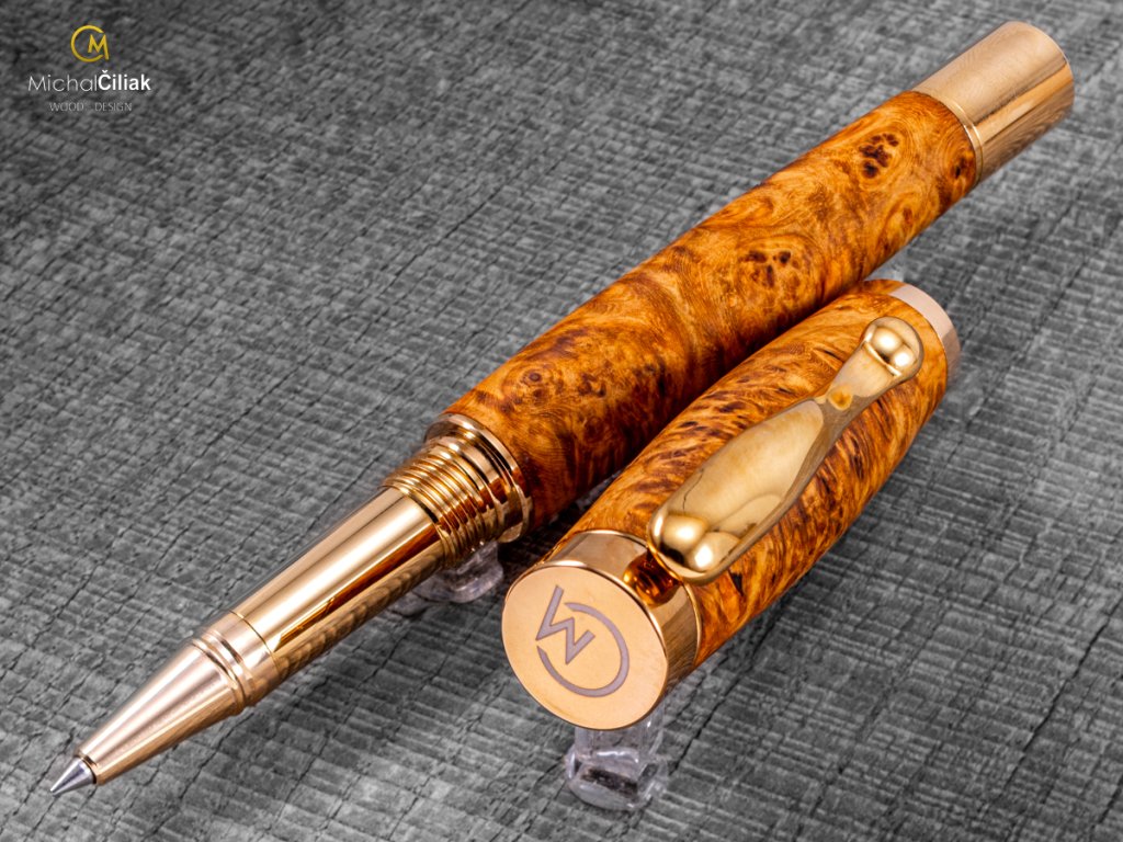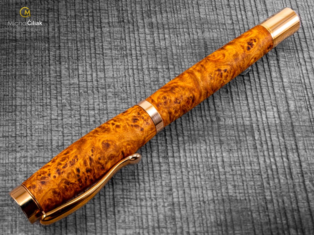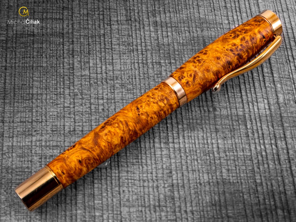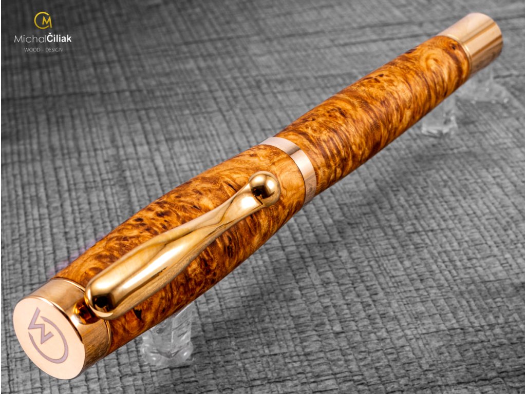 Exklusiver und luxuriöser Kugelschreiber von herausragender Qualität Ambonea Burl-Holz - Elegant golden