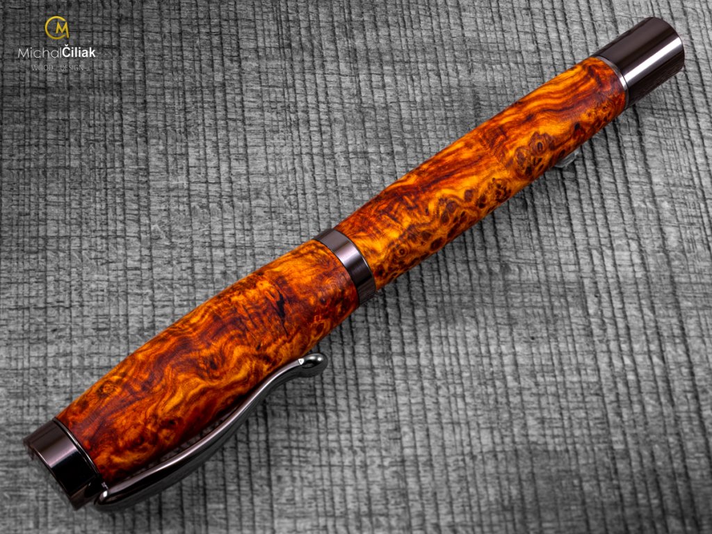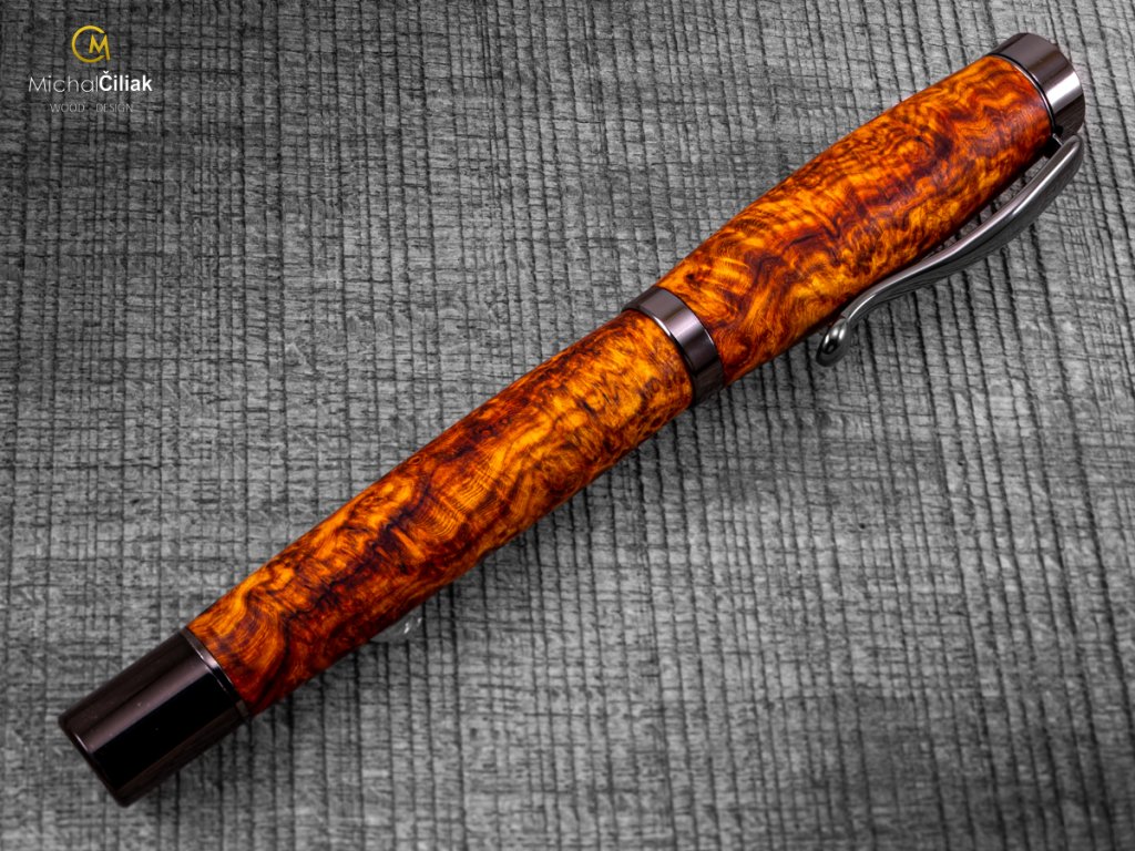 Handgefertigter Füller aus Ambonea Burl Wood – luxuriöses Holz mit einzigartiger Maserung Dieser Füller ist wirklich einzigartig. Ich habe ihn von Hand aus Ambonea Burl Wood gefertigt, einem der seltensten und luxuriösesten Hölzer der Welt, bekannt für seine markante Maserung und kontrastreichen Farbtöne von Gold bis tiefrot. Jeder Füller ist ein Unikat – kein Stück Holz gleicht dem anderen. Ambonea Wood stammt aus Indonesien, meist von den Inseln Borneo, Sulawesi und den Molukken. Das Holz ist hart, widerstandsfähig und aufgrund des langsamen Baumwachstums besonders strukturiert, wodurch der Füller eine faszinierende dreidimensionale Optik erhält. Der Herstellungsprozess ist aufwendig – das Holz wird sorgfältig bearbeitet und in die endgültige Form gebracht. Jeder Füller wird von Hand gedrechselt, poliert und mit natürlichen Wachsen und Ölen behandelt. Das Ergebnis ist ein eleganter, robuster und luxuriöser Füller, der angenehm in der Hand liegt und langlebig ist. TIPP! Dieser Füller aus Ambonea Burl Wood eignet sich perfekt als luxuriöses Geschenk, das einzigartiges Design und seltenes Holz vereint. Ideal für Sammler, Schreibbegeisterte oder als originelles Geschenk zu Geburtstagen, Jubiläen oder besonderen Anlässen. Jedes Stück erzählt seine eigene Geschichte durch die einzigartige Maserung und den Charakter des Holzes. Mit diesem Füller können Sie Ihre eigenen Geschichten schreiben oder ihn an jemanden verschenken, der Luxus und Einzigartigkeit zu schätzen weiß.