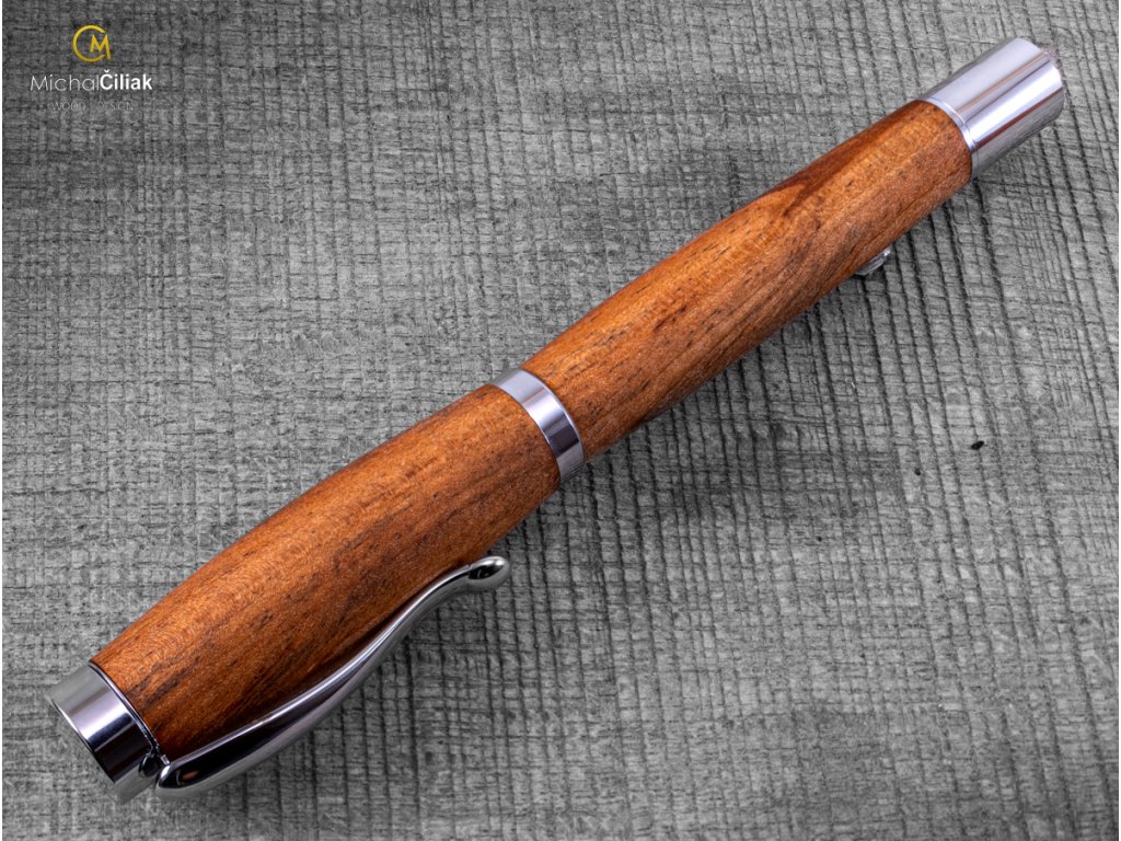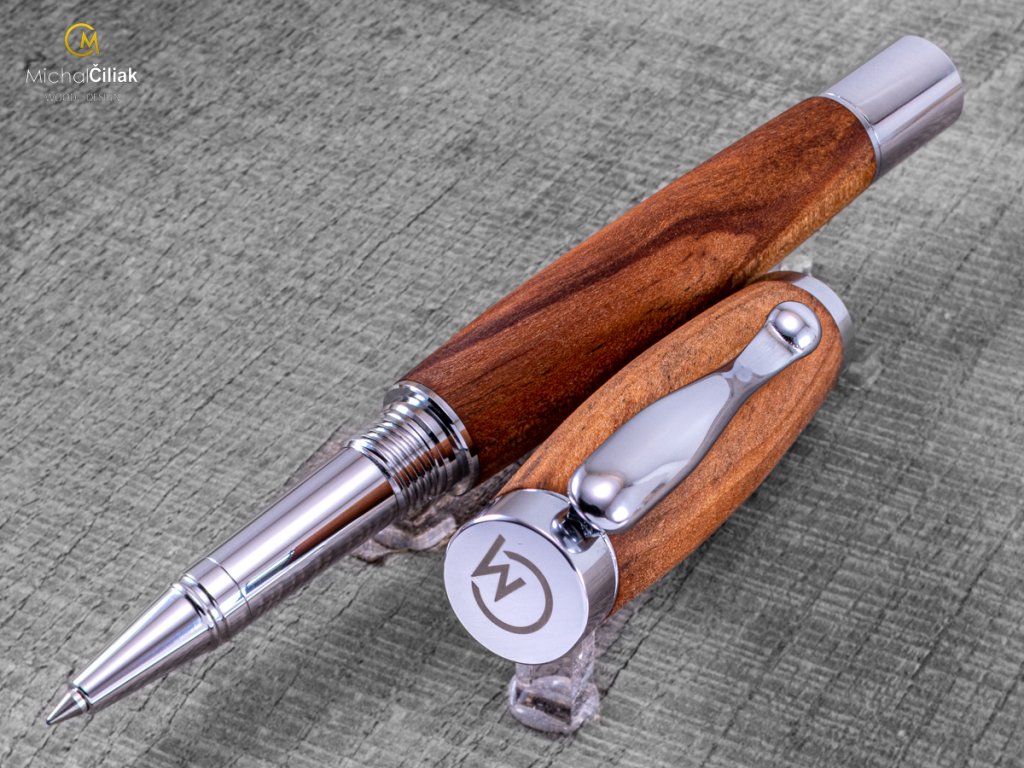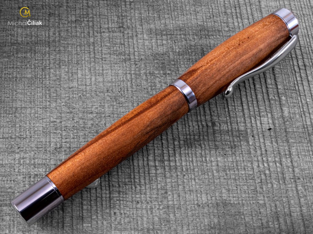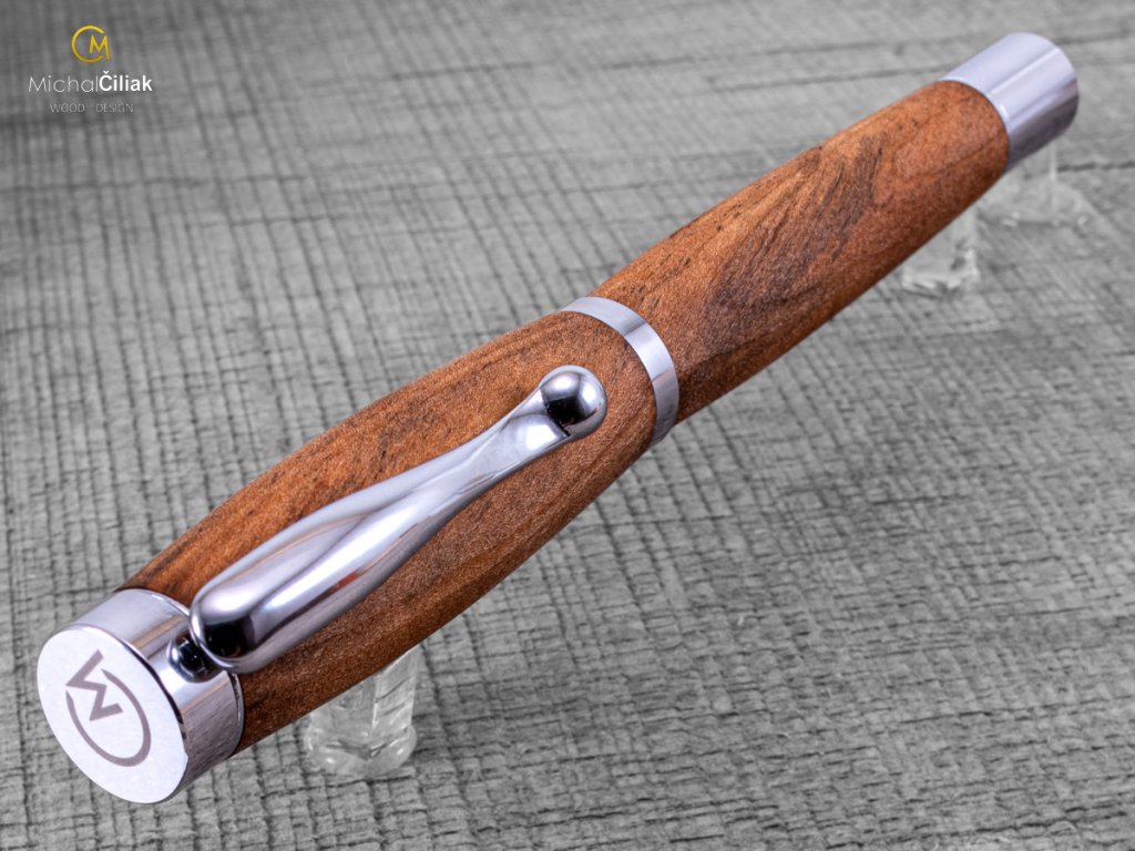 Handgemacht vom Apfelbaum, dessen Kern, aus dem der Stift besteht, ist hell- bis dunkelbraun gefärbt mit einer ziemlich deutlichen Gravur mit Farbkontrasten. Die Kombination der dunklen und hellbraunen Farben macht diesen Stift sehr elegant mit der notwendigen Portion Persönlichkeit.