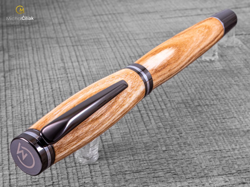 Handgefertigt aus Esche, deren Holz sehr hart und zugleich flexibel ist - eines der flexibelsten europischen Hölzer. Das Eschenkernholz ist hellbraun mit sehr ausgeprägten Jahresringen. Aus diesem Grund ist die Auswahl des Holzes sehr wichtig, weil bestimmte Stücke Eschenholz wirklich interessante Jahresringe haben, wie dieser Stift beweist. Es sieht fast künstlich aus, aber glauben Sie es, das Holz ist eine Schöpfung der Natur.