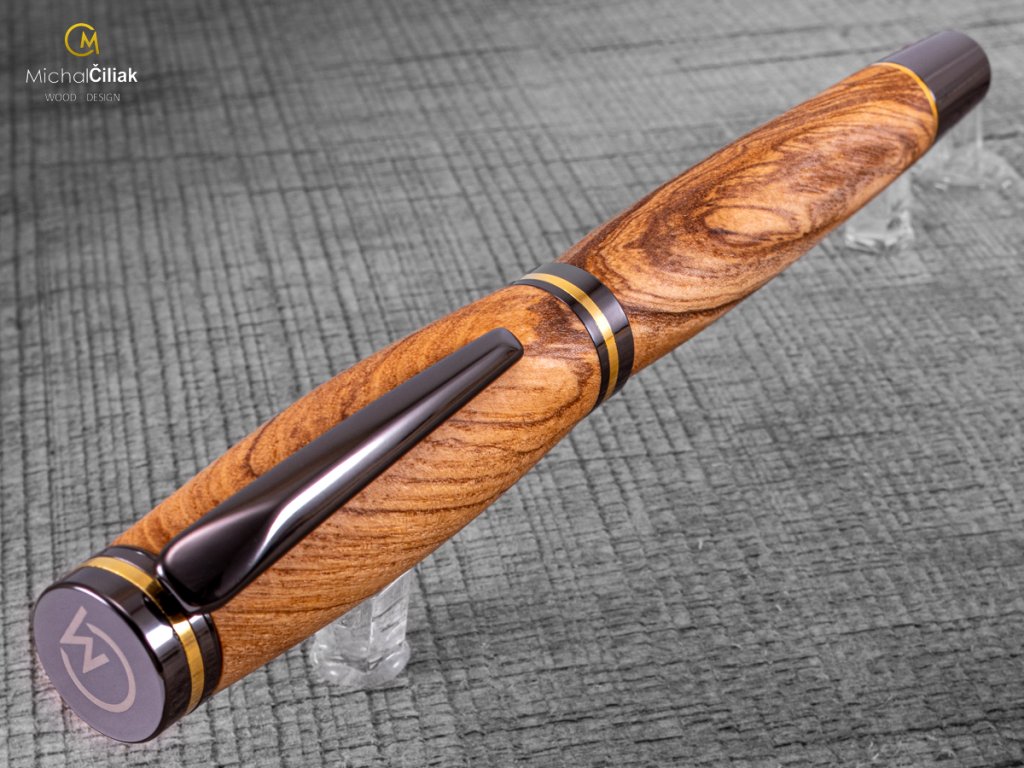 Handgefertigt aus Esche, deren Holz sehr hart und zugleich flexibel ist - eines der flexibelsten europischen Hölzer. Das Eschenkernholz ist hellbraun mit sehr ausgeprägten Jahresringen. Aus diesem Grund ist die Auswahl des Holzes sehr wichtig, weil bestimmte Stücke Eschenholz wirklich interessante Jahresringe haben, wie dieser Stift beweist. Es sieht fast künstlich aus, aber glauben Sie es, das Holz ist eine Schöpfung der Natur.