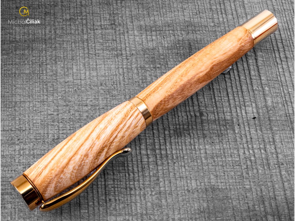 Handgefertigt aus Esche, deren Holz sehr hart und zugleich flexibel ist - eines der flexibelsten europischen Hölzer. Das Eschenkernholz ist hellbraun mit sehr ausgeprägten Jahresringen. Aus diesem Grund ist die Auswahl des Holzes sehr wichtig, weil bestimmte Stücke Eschenholz wirklich interessante Jahresringe haben, wie dieser Stift beweist. Es sieht fast künstlich aus, aber glauben Sie es, das Holz ist eine Schöpfung der Natur.