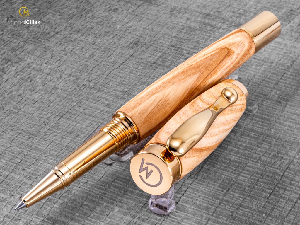 Handgefertigt aus Ash Tree - Elegant mit goldfarbenen Metallkomponenten - inkl. Nachfüllpatrone.