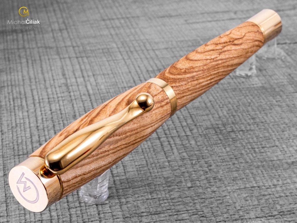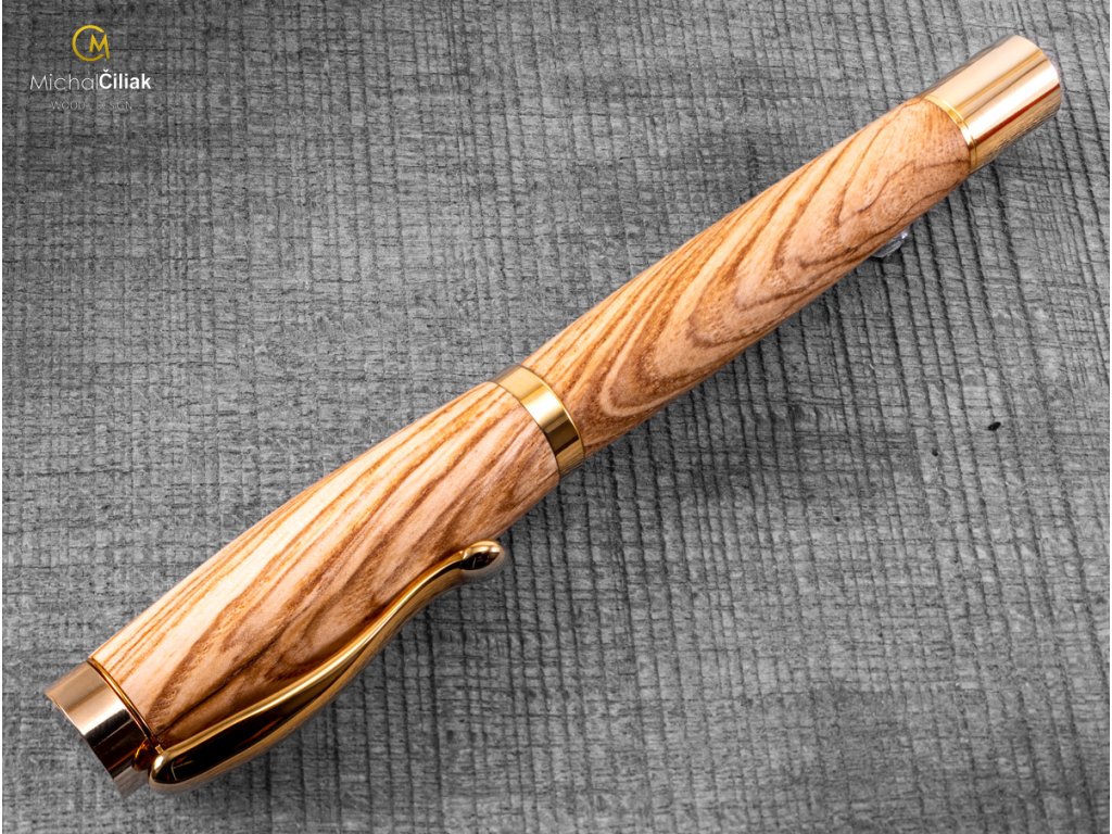 Handgefertigt aus Esche, deren Holz sehr hart und zugleich flexibel ist - eines der flexibelsten europischen Hölzer. Das Eschenkernholz ist hellbraun mit sehr ausgeprägten Jahresringen. Aus diesem Grund ist die Auswahl des Holzes sehr wichtig, weil bestimmte Stücke Eschenholz wirklich interessante Jahresringe haben, wie dieser Stift beweist. Es sieht fast künstlich aus, aber glauben Sie es, das Holz ist eine Schöpfung der Natur.