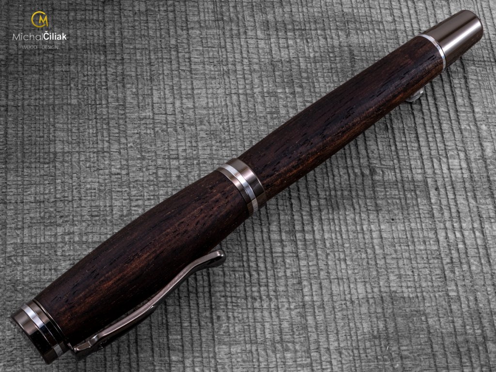 Makassar-Ebenholz ist eine Art von blühendem Baum aus der Familie Ebenacea, der von der Insel Sulawesi in Indonesien stammt. Die Hauptstadt der Insel mit dem selben Namen „Sulawesi Makassar“ hat 1 469 601 Einwohner, mit Vororten mehr als zwei Millionen. Makassar-Ebenholz gehört zu den „farbigeren“ Arten. Das Splintholz ist weißgelb, das Kernholz ist schwarz mit sehr charakteristischen hellgelben bis braunen Längsstreifen. Der Baum erreicht eine Höhe von 20 m, auch wenn diese heute selten zu sehen sind. Die Dichte des trockenen Holzes beträgt 1 150 kg/m, was bedeutet, dass das Holz ziemlich widerstandsfähig und langlebig ist. Das Makassar-Ebenholz wird als sehr wertvolles Holz für Drechselarbeiten und feine Schreinerarbeiten betrachtet und wird in traditionellen japanischen Häusern als Material für Accessoires hoch angesehen. Der Hauptimporteur dieses Holzes war Japan. Es wird auch als Holz für Musikinstrumente und andere Gegenstände benutzt, beispielsweise für diesen handgefertigten Füller aus der Werkstatt von Michal Čiliak – Wood Design.