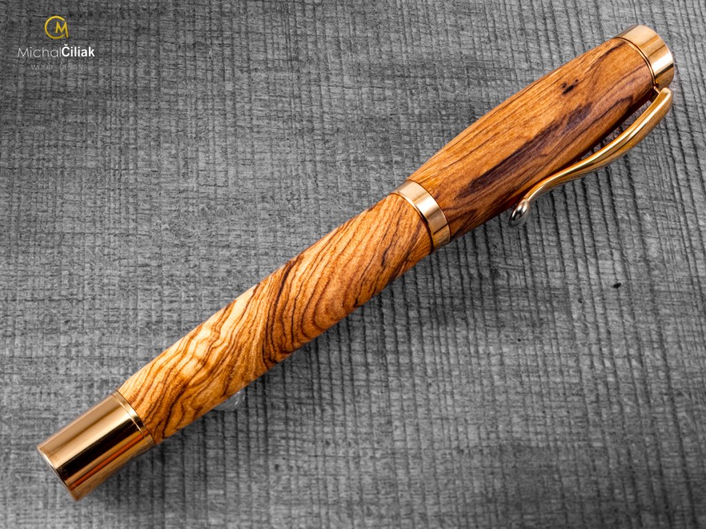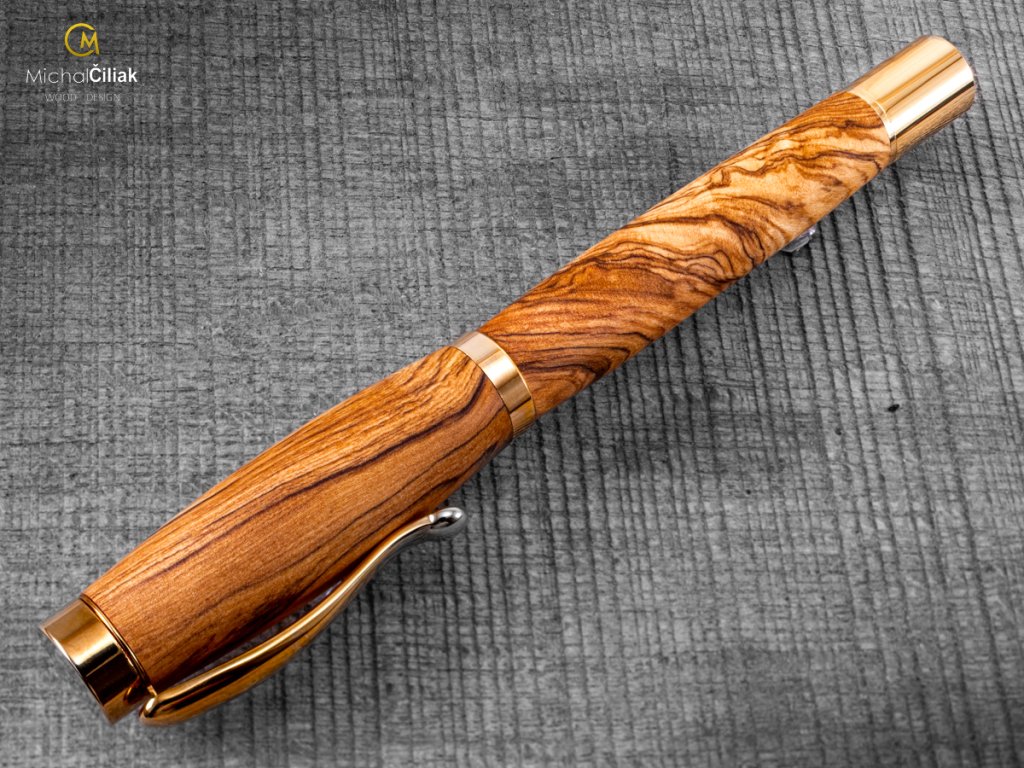 Handgefertigt aus farbigem Harz und erstklassigem Olivenholz, das fest, sehr widerstandsfähig und interessant gefärbt ist und von cremegelb über rosa bis schwarz reicht. Ich brachte es persönlich von der griechischen Insel Karpathos mit, nachdem ich fast sechs Wochen damit verbracht hatte, es zu finden. Der schwierigste Teil, der auch am längsten dauerte, war, mit einem örtlichen Bauern in Kontakt zu treten, der mir große Stücke Olivenholz verkaufte, dessen Alter er auf ungefähr 700 Jahre schätzte. Das langsame Wachstum des Baumes erzeugt ein sehr hartes Holz und eine große Vielfalt an Stammformen, die dem Olivenholz eine erstaunliche Gravur verleihen. EMPFEHLUNG: Ein Stift mit einer Geschichte, wie hunderte Jahre altes Olivenholz in den Hügeln der Insel Karpathos gefunden wurde, wie ich ausgewählte Stücke daraus zusammen mit einem lokalen Zimmermann herausgeschnitten habe, in meine Werkstatt brachte und ihnen neues Leben eingehaucht habe. Sehen Sie hier, wie dieser exquisite Stift in die Welt kam. Werden Sie Ihre eigenen Geschichten damit schreiben oder geben Sie es jemandem als ein wirklich einzigartiges Geschenk?