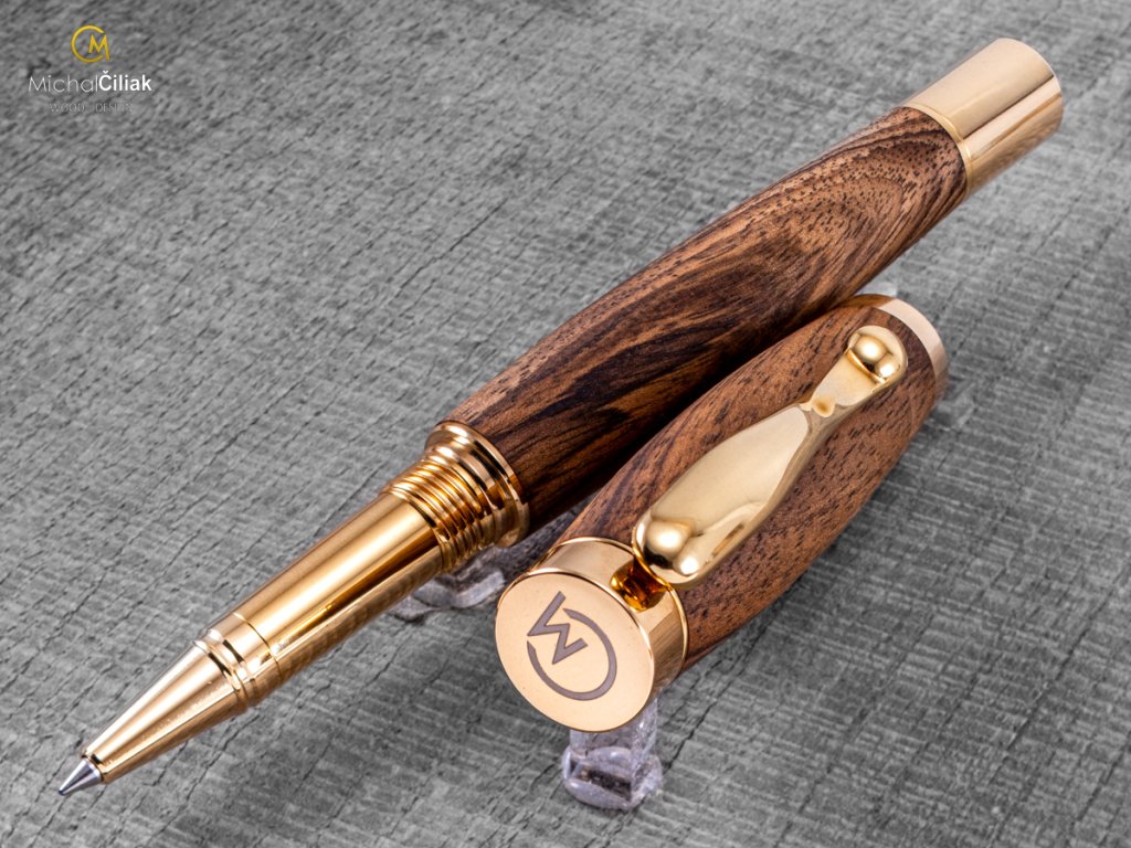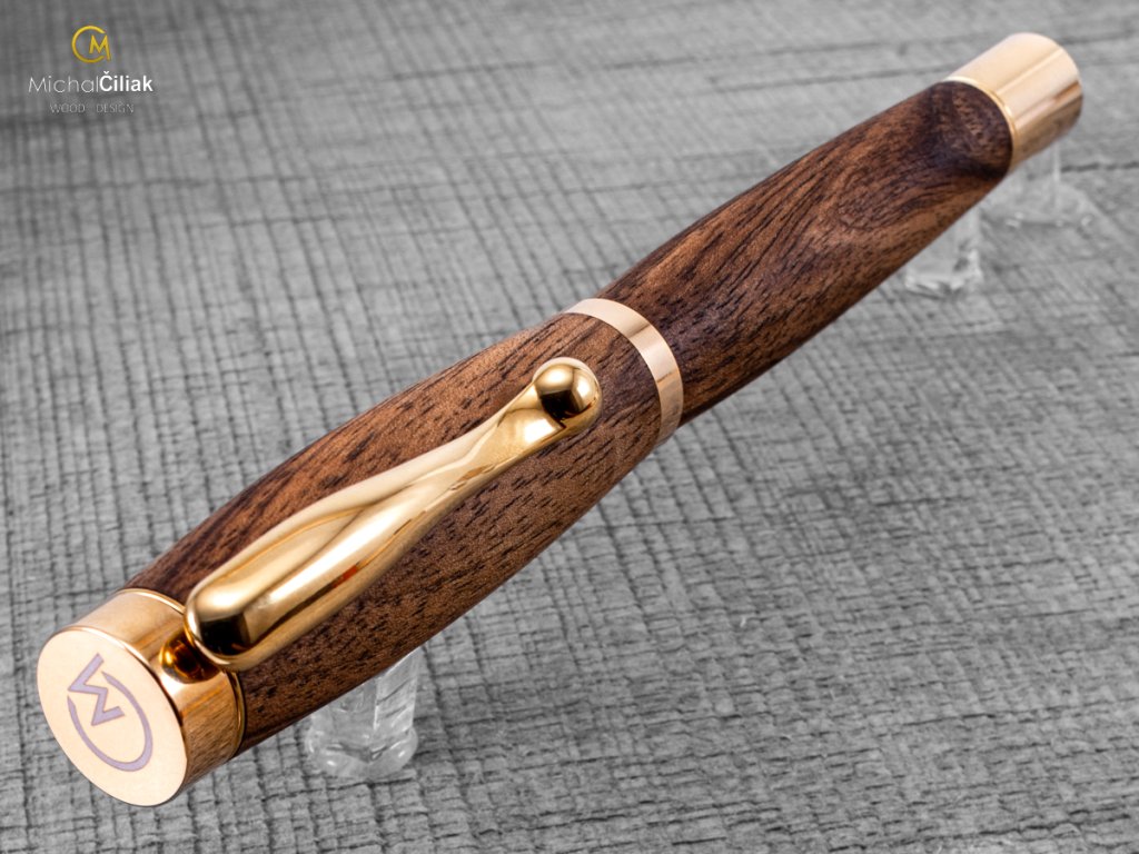 Handgefertigt aus Royal Walnut - Elegant mit goldfarbenen Metallkomponenten - inkl. Nachfüllpatrone.
