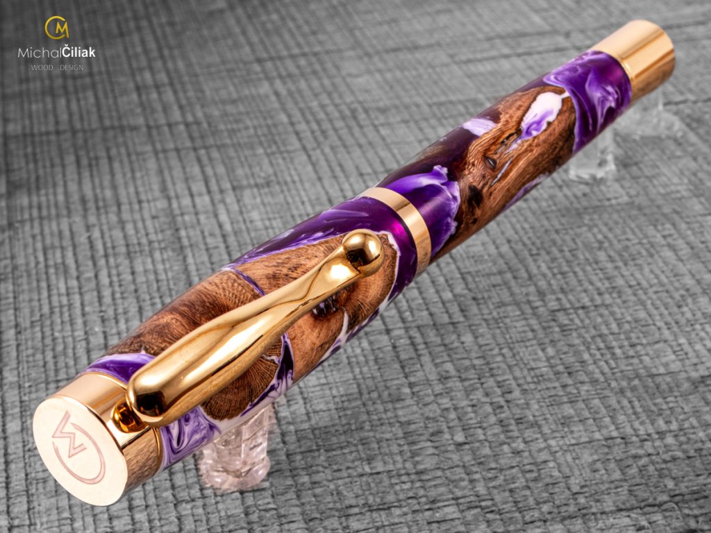Handgefertigt aus White & Violet Wine - Elegant mit goldfarbenen Metallkomponenten - inkl. Nachfüllpatrone.