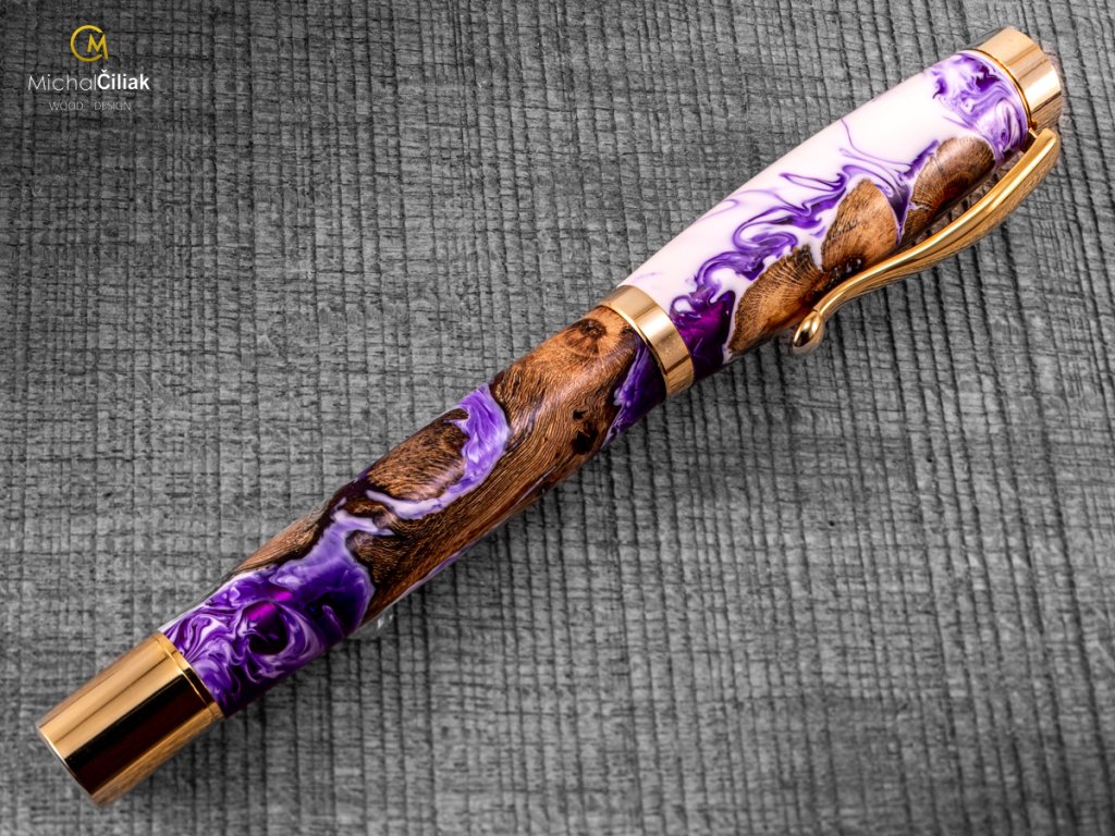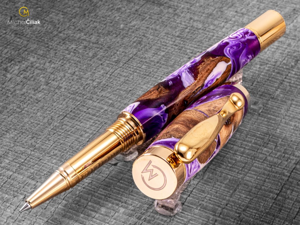Exklusiver und luxuriöser Kugelschreiber von herausragender Qualität White & Violet Wine - Elegant golden