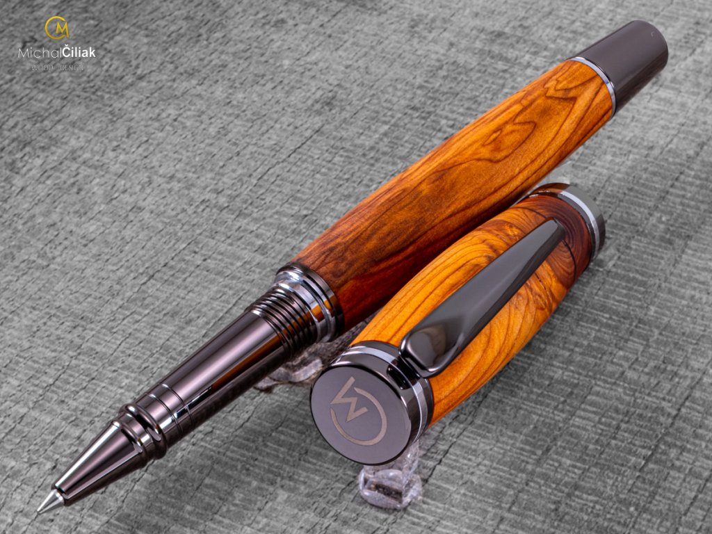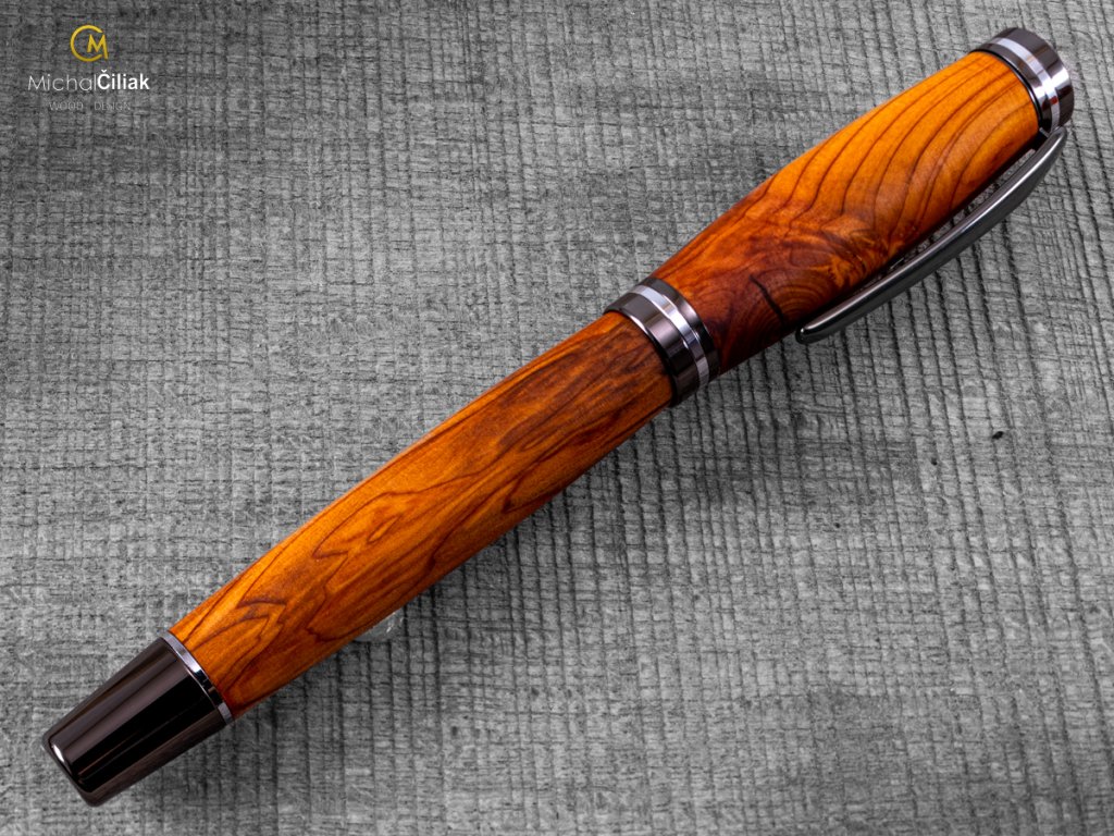 Handgemacht von der seltenen Eibe, einer der härtesten Nadelbäume in Europa. Seine rötlich-orange Farbe Holz hat ausgeprägte Jahresringe, die eine schöne Gravierung schaffen. Damit ein aus diesem Holz gefertigter Stift auch interessant aussieht, muss man das Material sehr sorgfältig suchen und auswählen. So entstand auch dieses exklusive Stück.