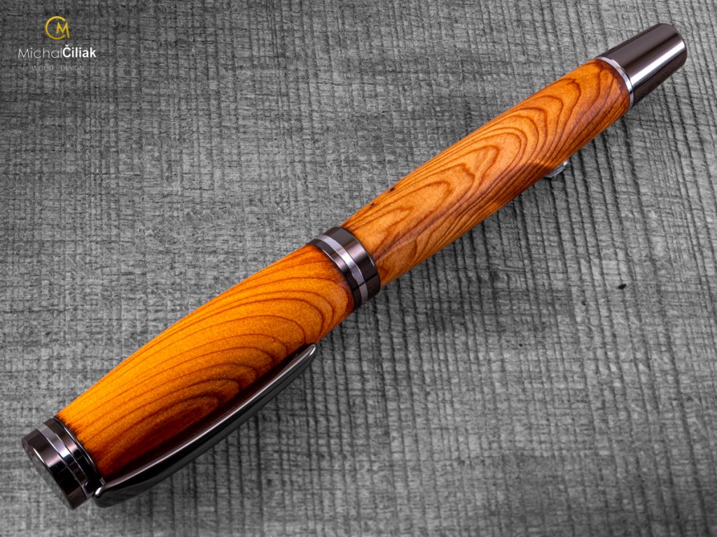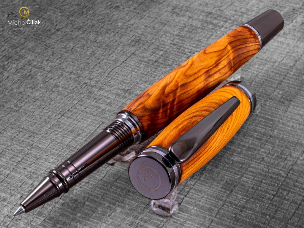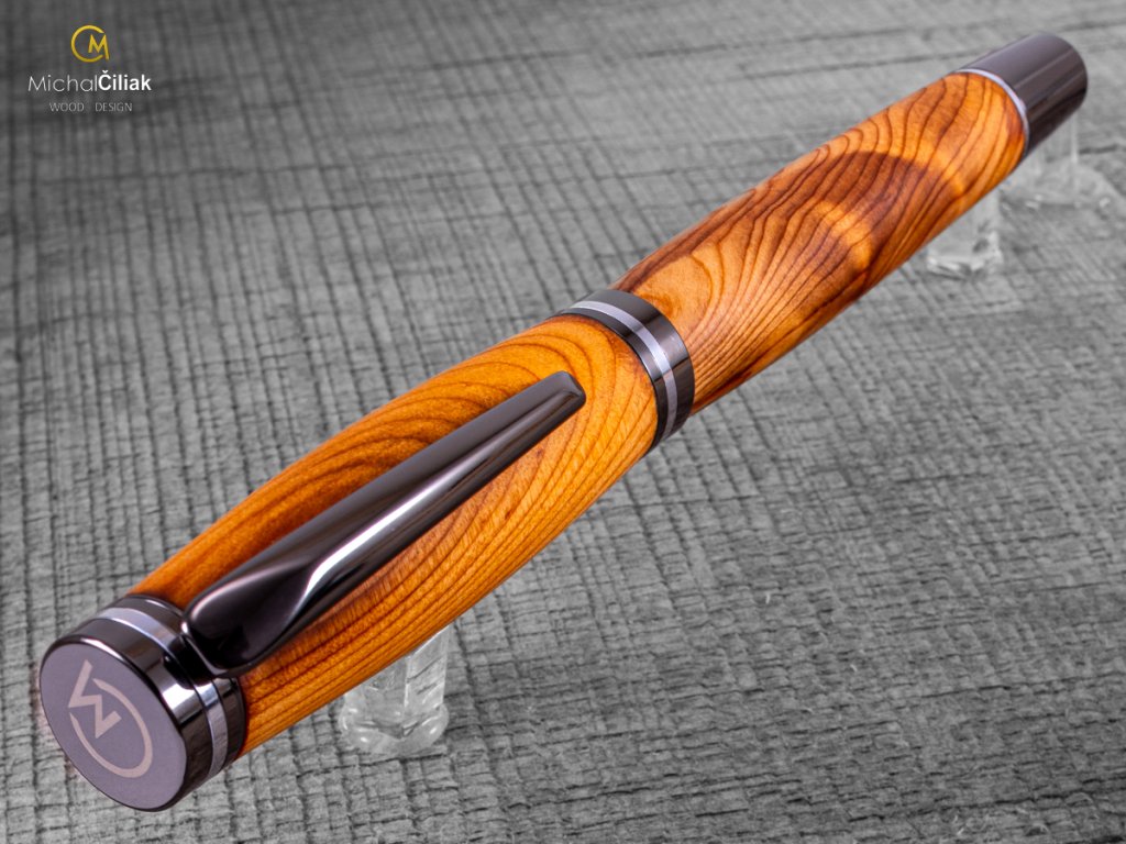 Handgemacht von der seltenen Eibe, einer der härtesten Nadelbäume in Europa. Seine rötlich-orange Farbe Holz hat ausgeprägte Jahresringe, die eine schöne Gravierung schaffen. Damit ein aus diesem Holz gefertigter Stift auch interessant aussieht, muss man das Material sehr sorgfältig suchen und auswählen. So entstand auch dieses exklusive Stück.
