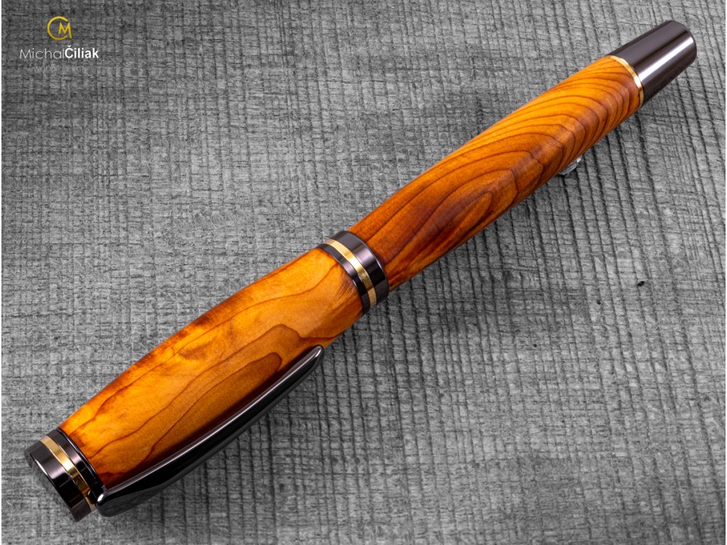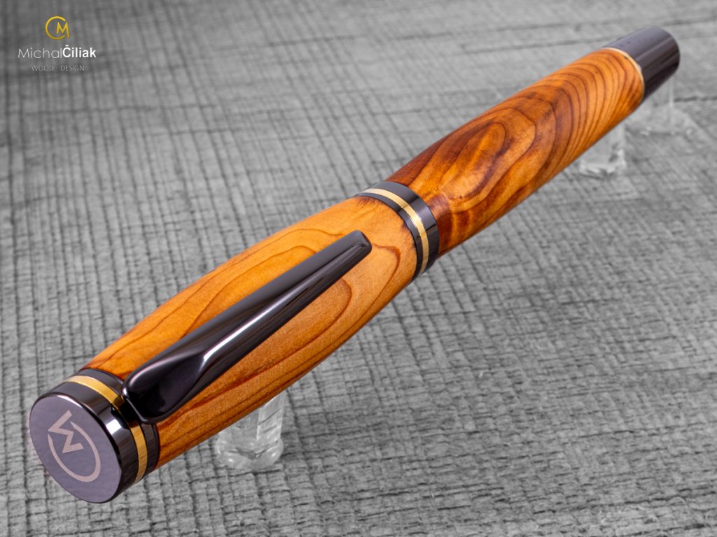 Handgemacht von der seltenen Eibe, einer der härtesten Nadelbäume in Europa. Seine rötlich-orange Farbe Holz hat ausgeprägte Jahresringe, die eine schöne Gravierung schaffen. Damit ein aus diesem Holz gefertigter Stift auch interessant aussieht, muss man das Material sehr sorgfältig suchen und auswählen. So entstand auch dieses exklusive Stück.