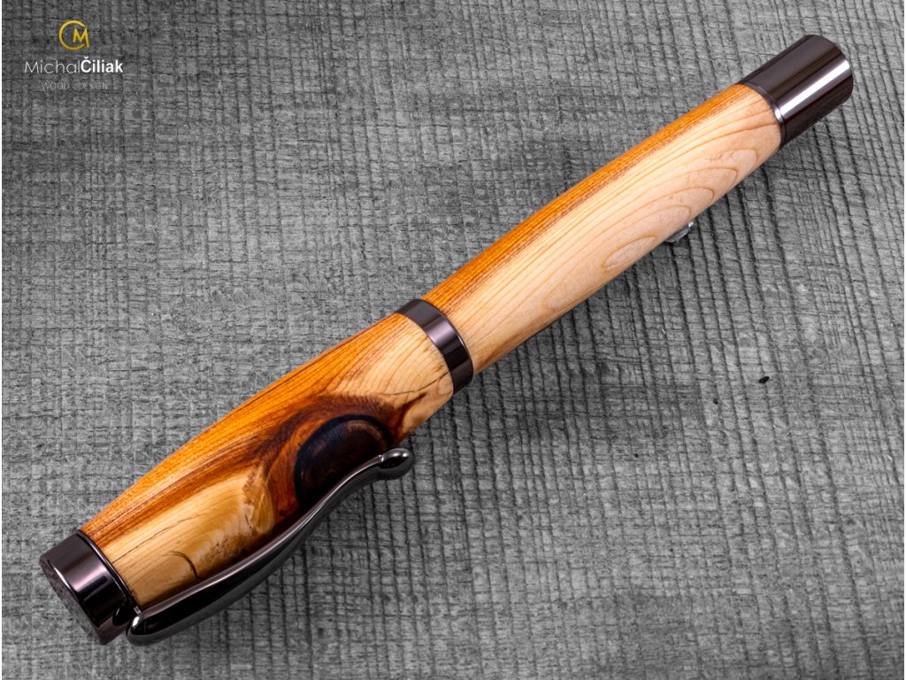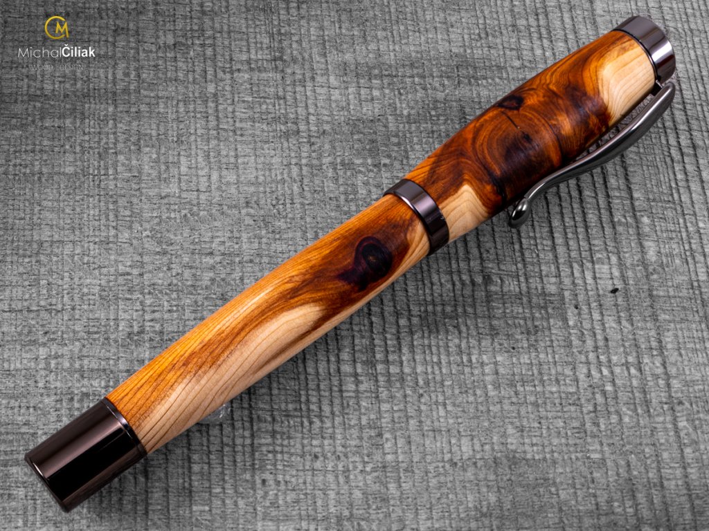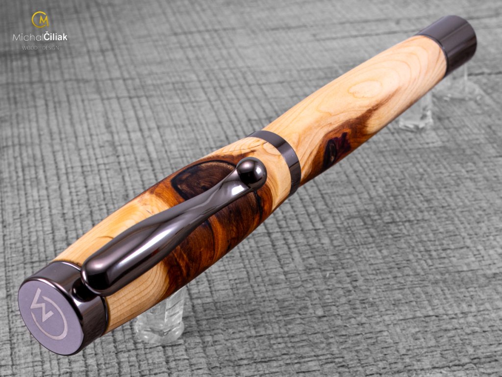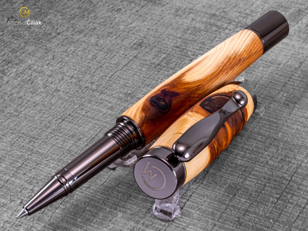 Handgemacht von der seltenen Eibe, einer der härtesten Nadelbäume in Europa. Seine rötlich-orange Farbe Holz hat ausgeprägte Jahresringe, die eine schöne Gravierung schaffen. Damit ein aus diesem Holz gefertigter Stift auch interessant aussieht, muss man das Material sehr sorgfältig suchen und auswählen. So entstand auch dieses exklusive Stück.