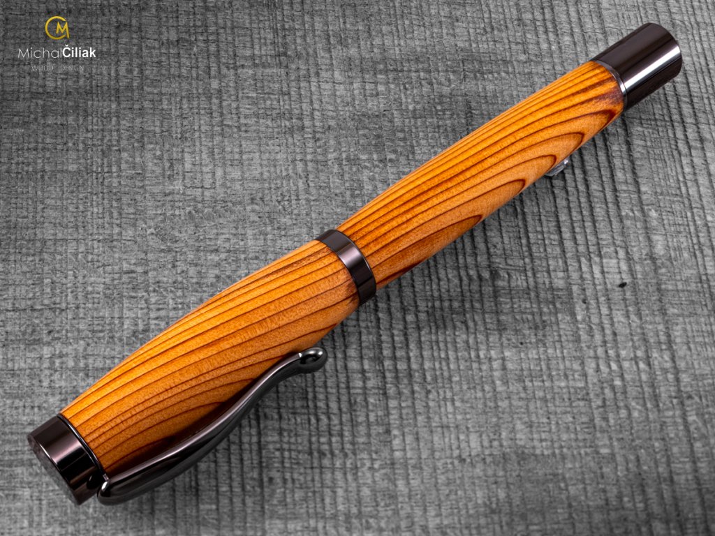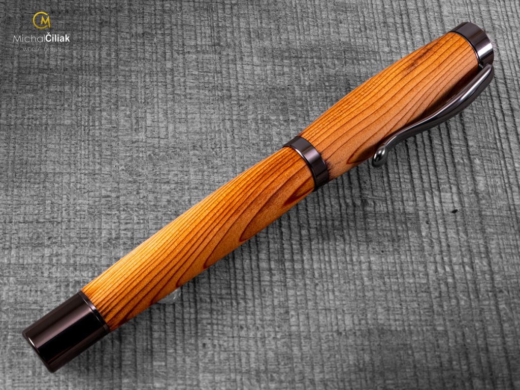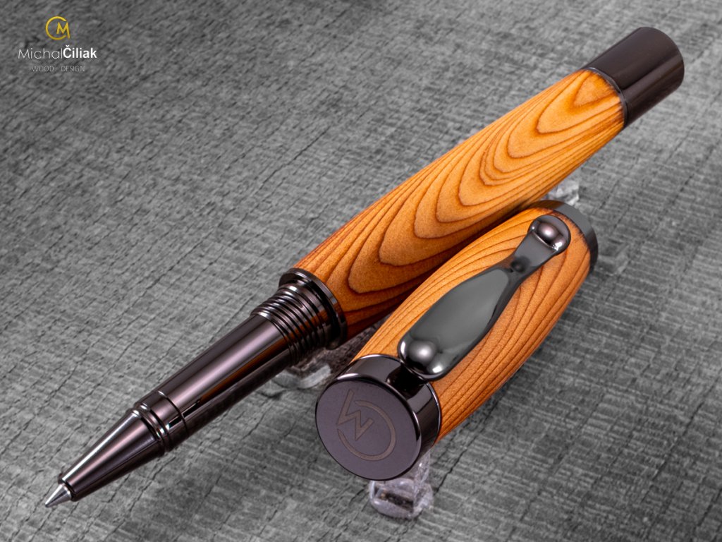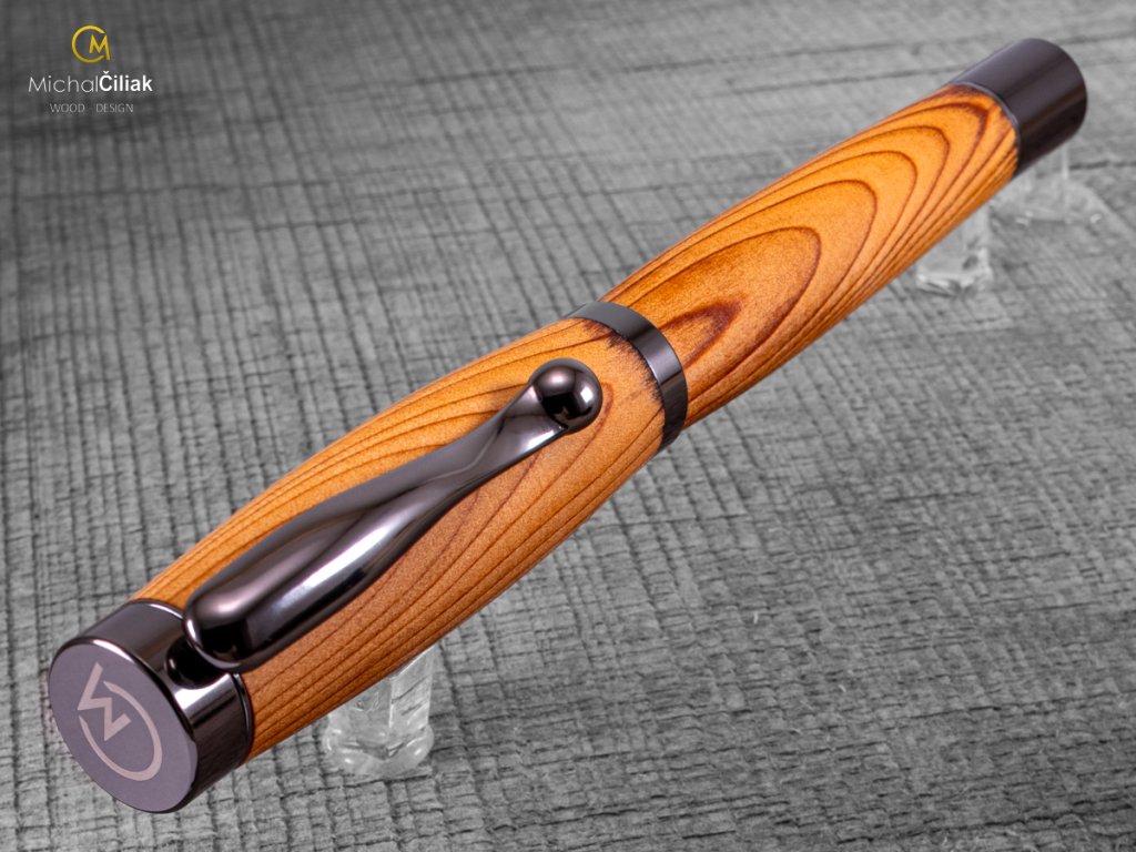Handgemacht von der seltenen Eibe, einer der härtesten Nadelbäume in Europa. Seine rötlich-orange Farbe Holz hat ausgeprägte Jahresringe, die eine schöne Gravierung schaffen. Damit ein aus diesem Holz gefertigter Stift auch interessant aussieht, muss man das Material sehr sorgfältig suchen und auswählen. So entstand auch dieses exklusive Stück.