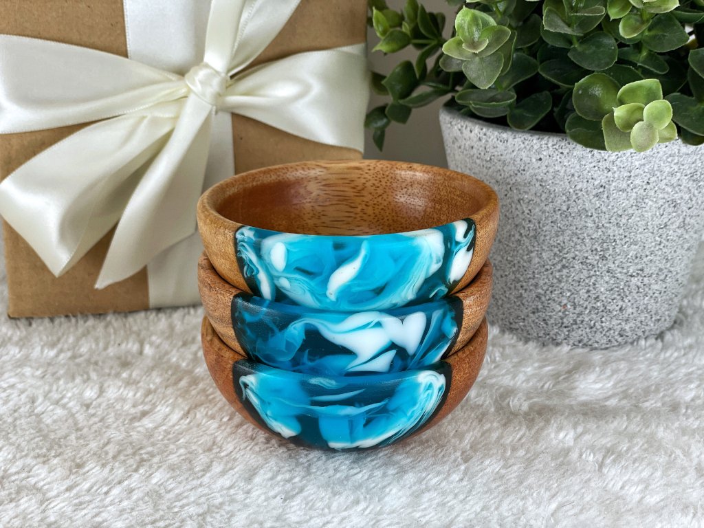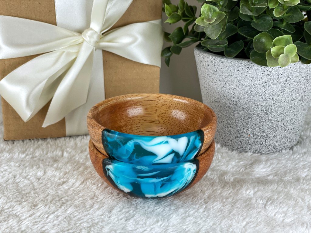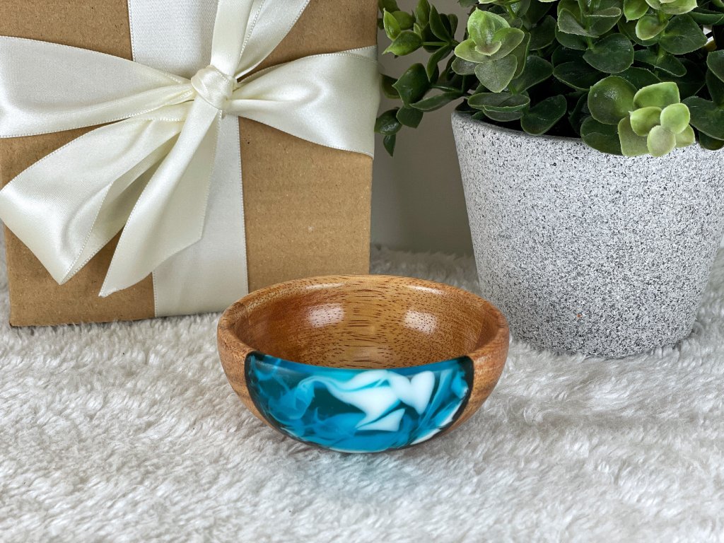 Verleihen Sie Ihrem Zuhause einen Hauch von Eleganz mit dieser handgefertigten Harzschale. Sie kombiniert wunderschön strukturiertes Mangoholz mit einem einzigartigen Epoxid-Design, das sofort ins Auge fällt. Perfekt nicht nur zum Servieren von Nüssen und Keksen, sondern auch als stilvolles Accessoire zur Aufbewahrung kleiner Gegenstände. Die präzise Handwerkskunst und das originelle Design machen sie zu einem wunderschönen Element in jedem Interieur – ideal für alltägliche sowie festliche Momente.